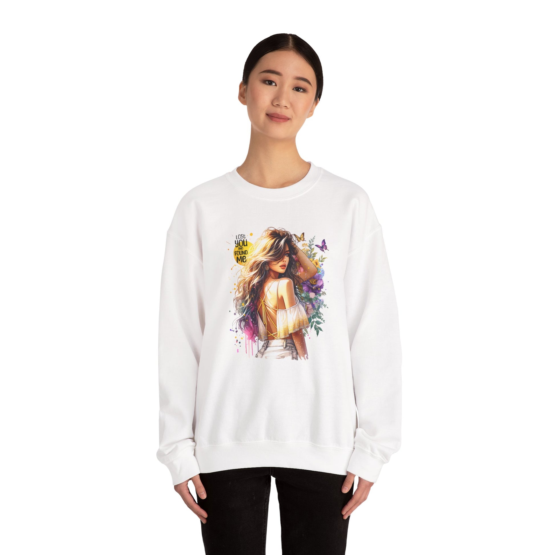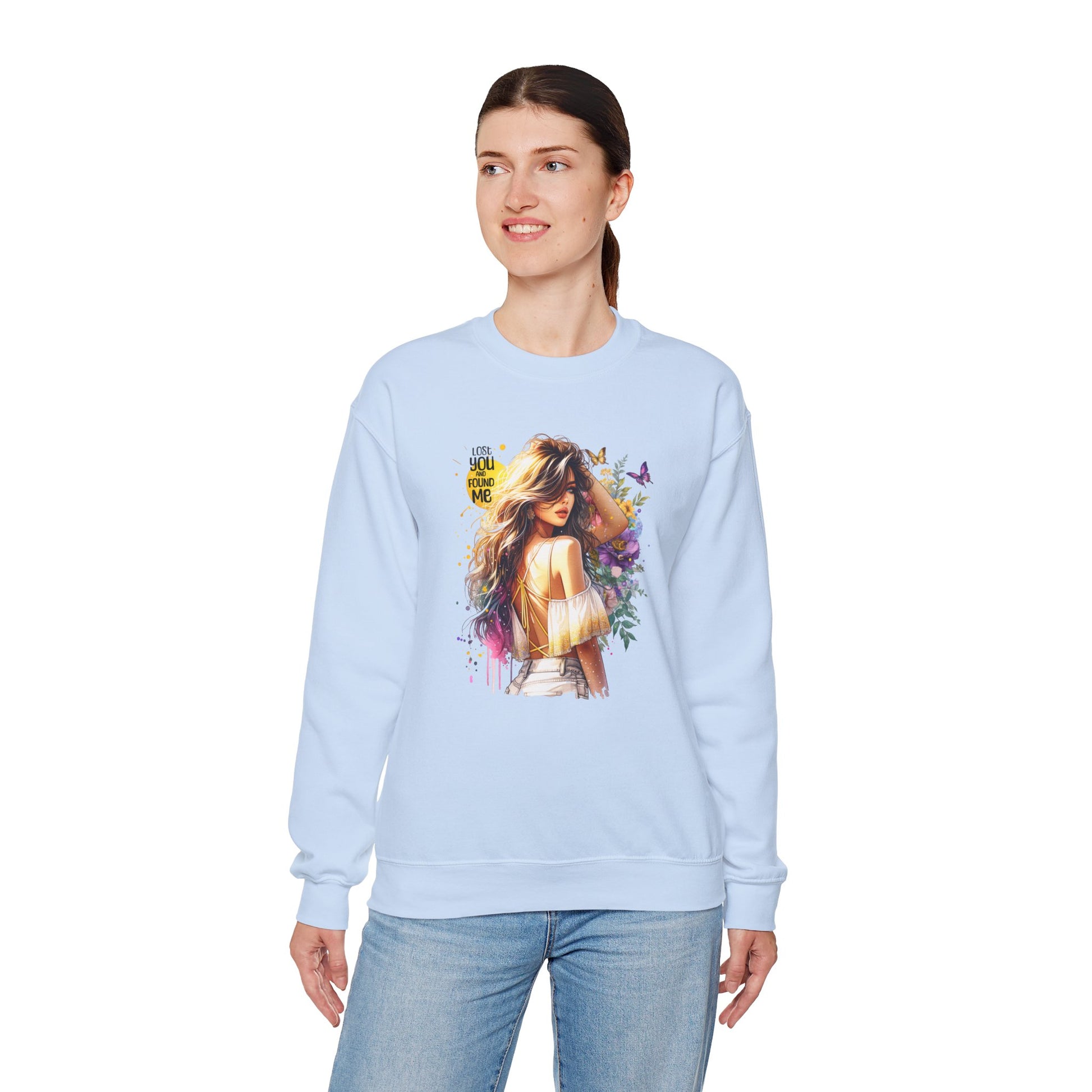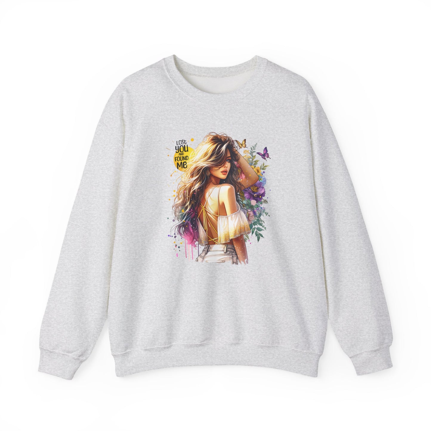 Lost You And Found Me Bohemian-Themed Crewneck Sweatshirt with Floral Design, Cozy Casual Wear, Gift for Her, Everyday Comfort, Family Gatherings, Spring Fashion