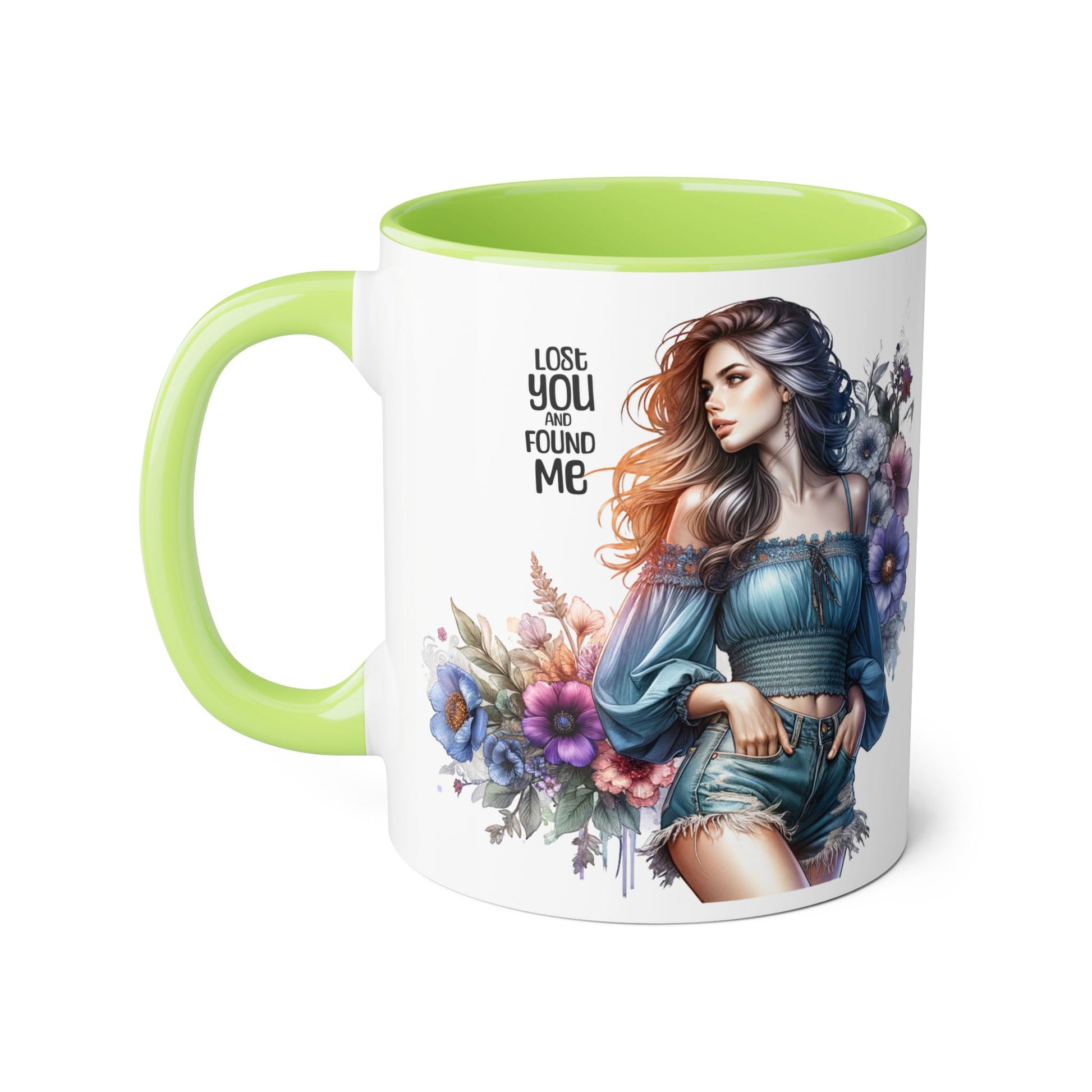 Lost You and Found Me Floral Art Accent Mug, You Lost Me Found Me Coffee Cup, Gift for Her, Artistic Drinkware, Unique Home Decor, Inspirational Kitchenware