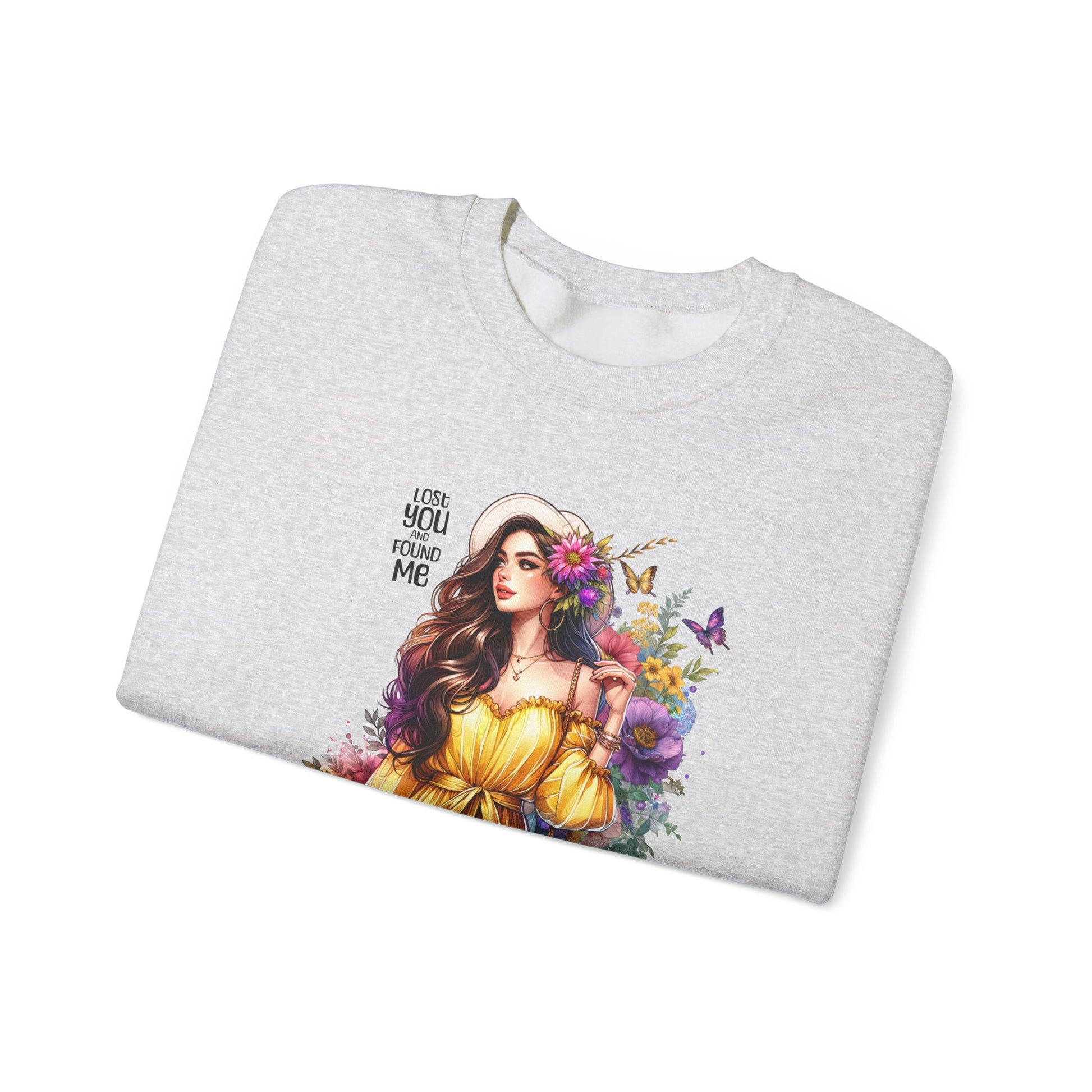 Lost You And Found Me Floral Art Crewneck Sweatshirt, Cozy Unisex Sweater, Gift for Her, Spring Fashion, Inspirational Apparel
