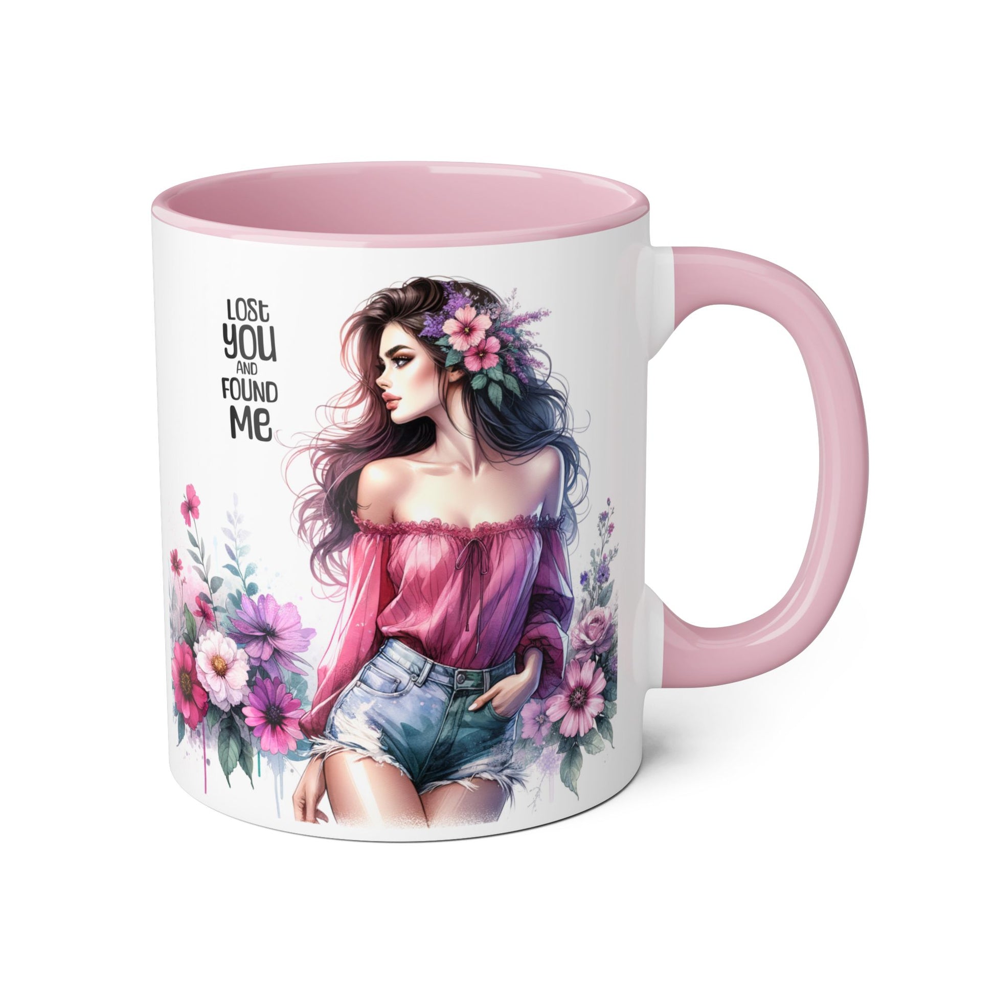 Lost You and Found Me Floral Beauty Accent Mug, Coffee Cup, Gift for Her, Inspirational Quote Mug, Artistic Drinkware, Home Decor