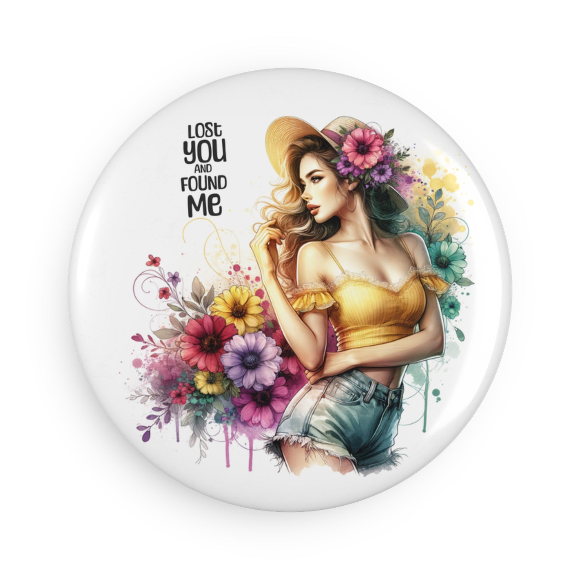 Lost You and Found Me Floral Magnet with Inspirational Quote, Decorative Button Magnet, Gift for Friends, Home Decor, Summer Vibes, Unique Collectible