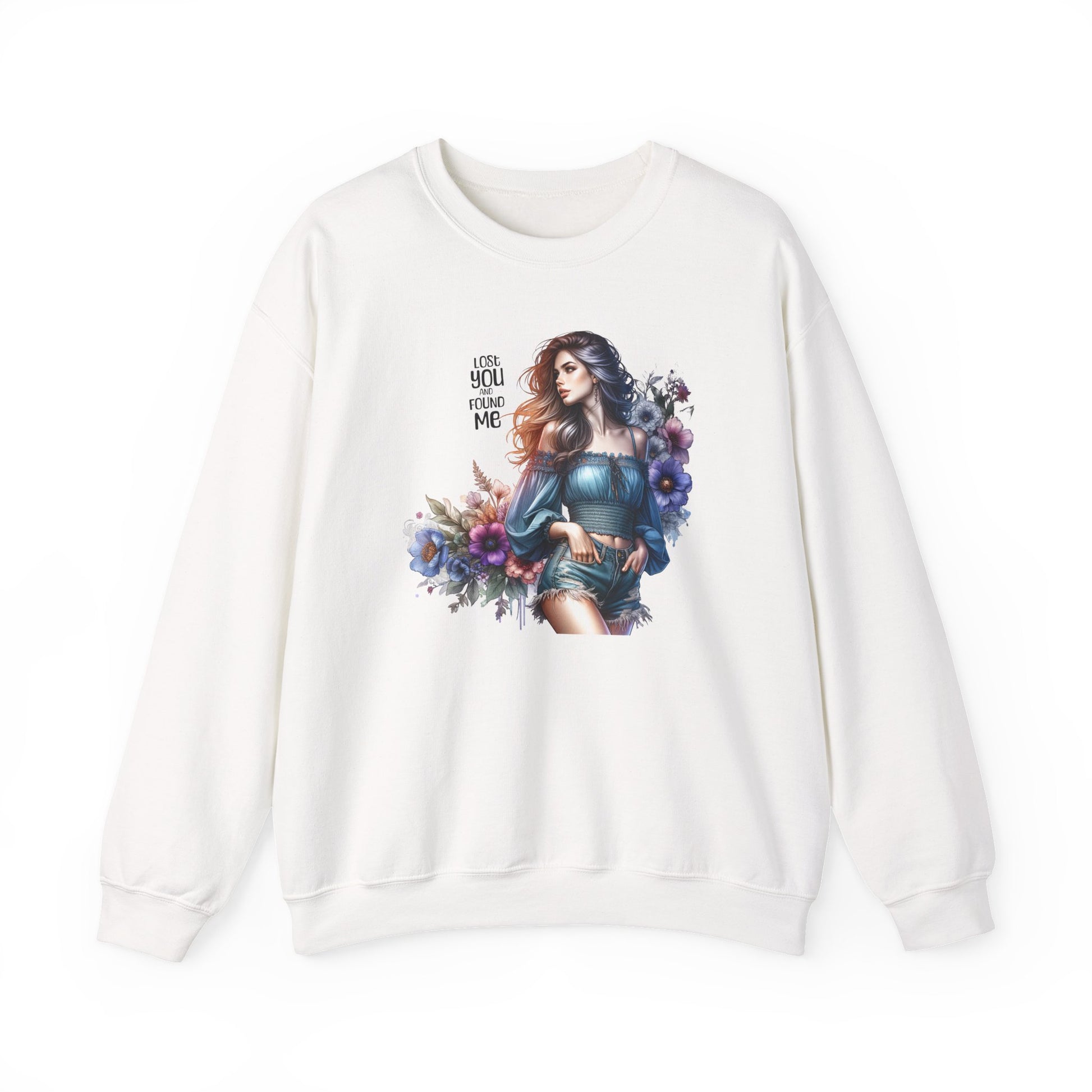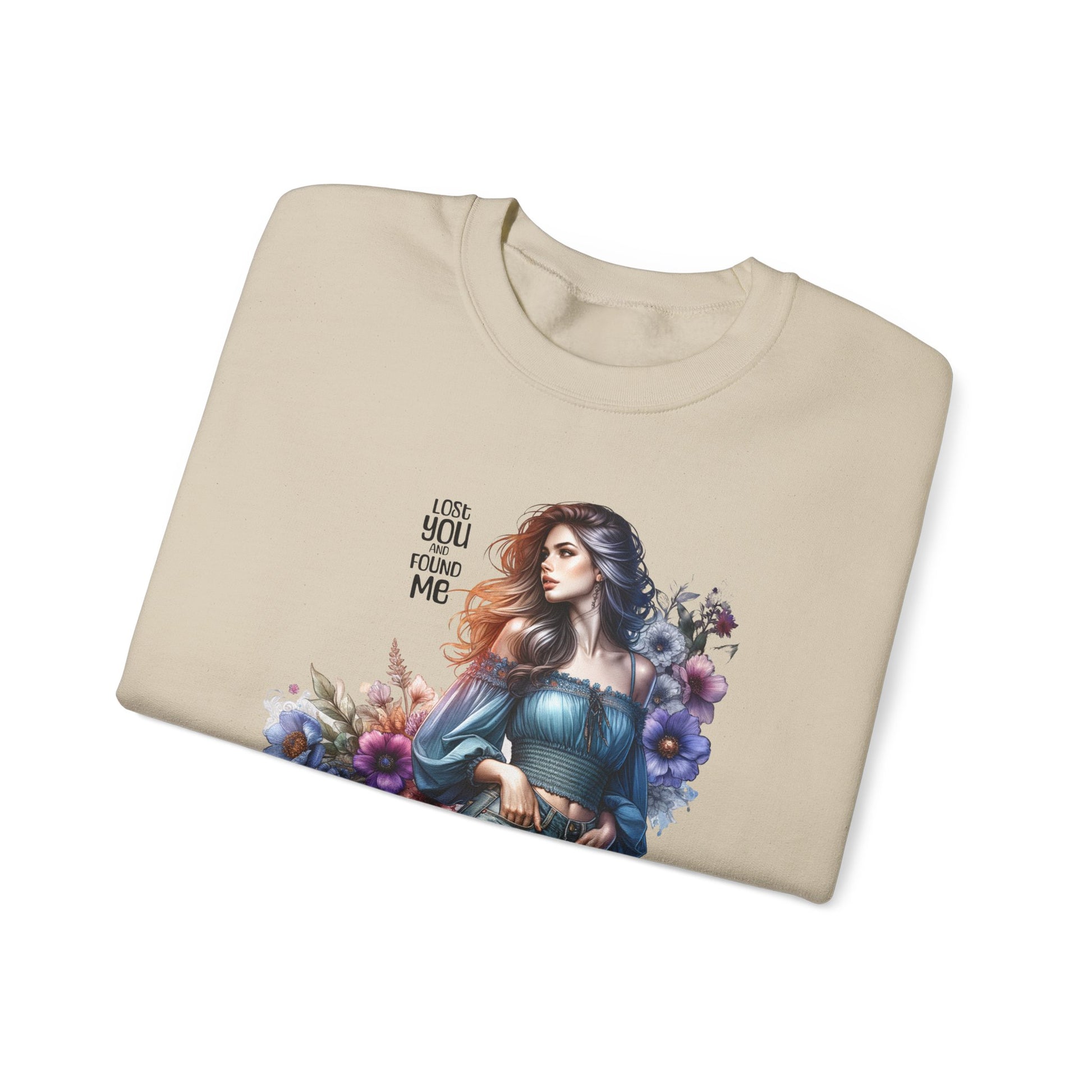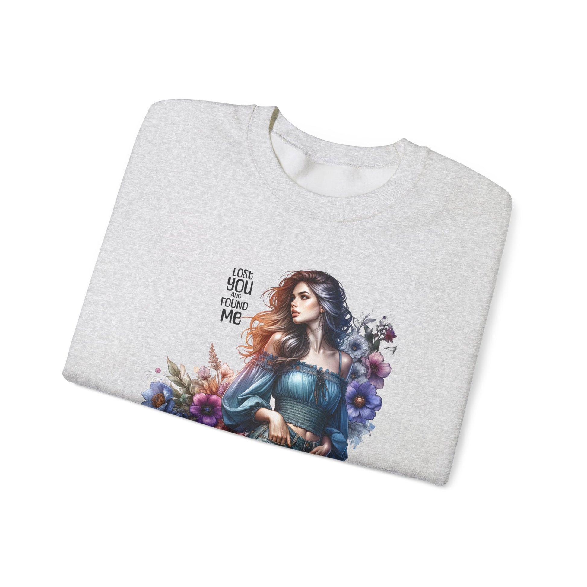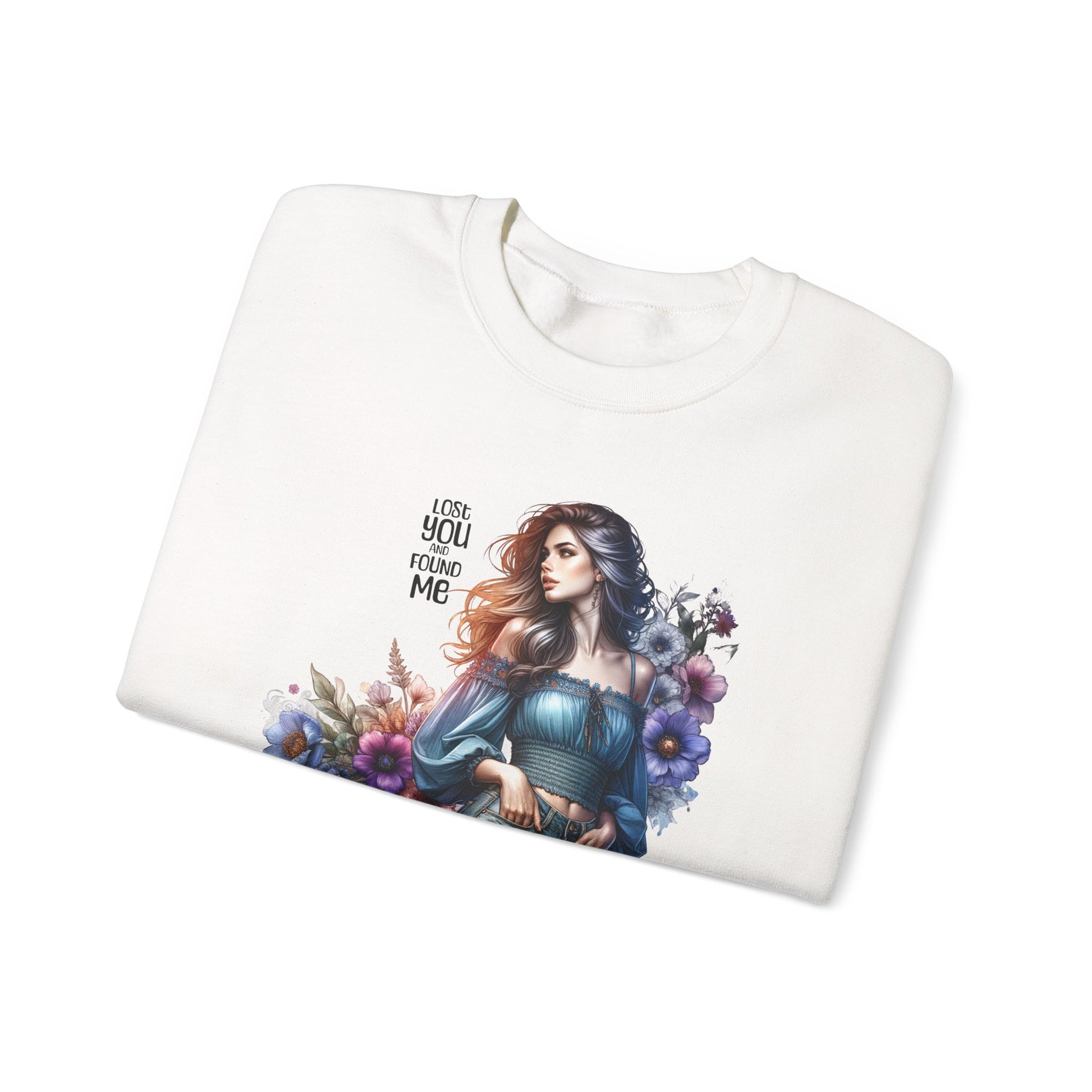 Lost You And Found Me Whimsical Floral Crewneck Sweatshirt | 'Until You Came to Me' Quote | Cozy Gift for Her, Floral Sweatshirt, Relaxed Style, Casual Wear
