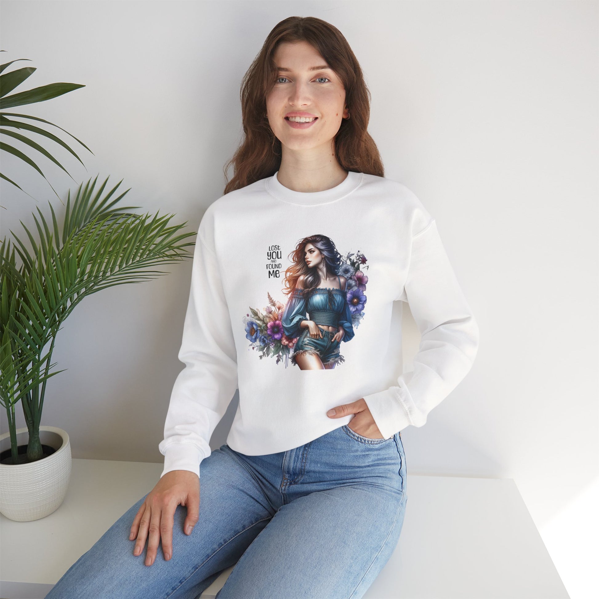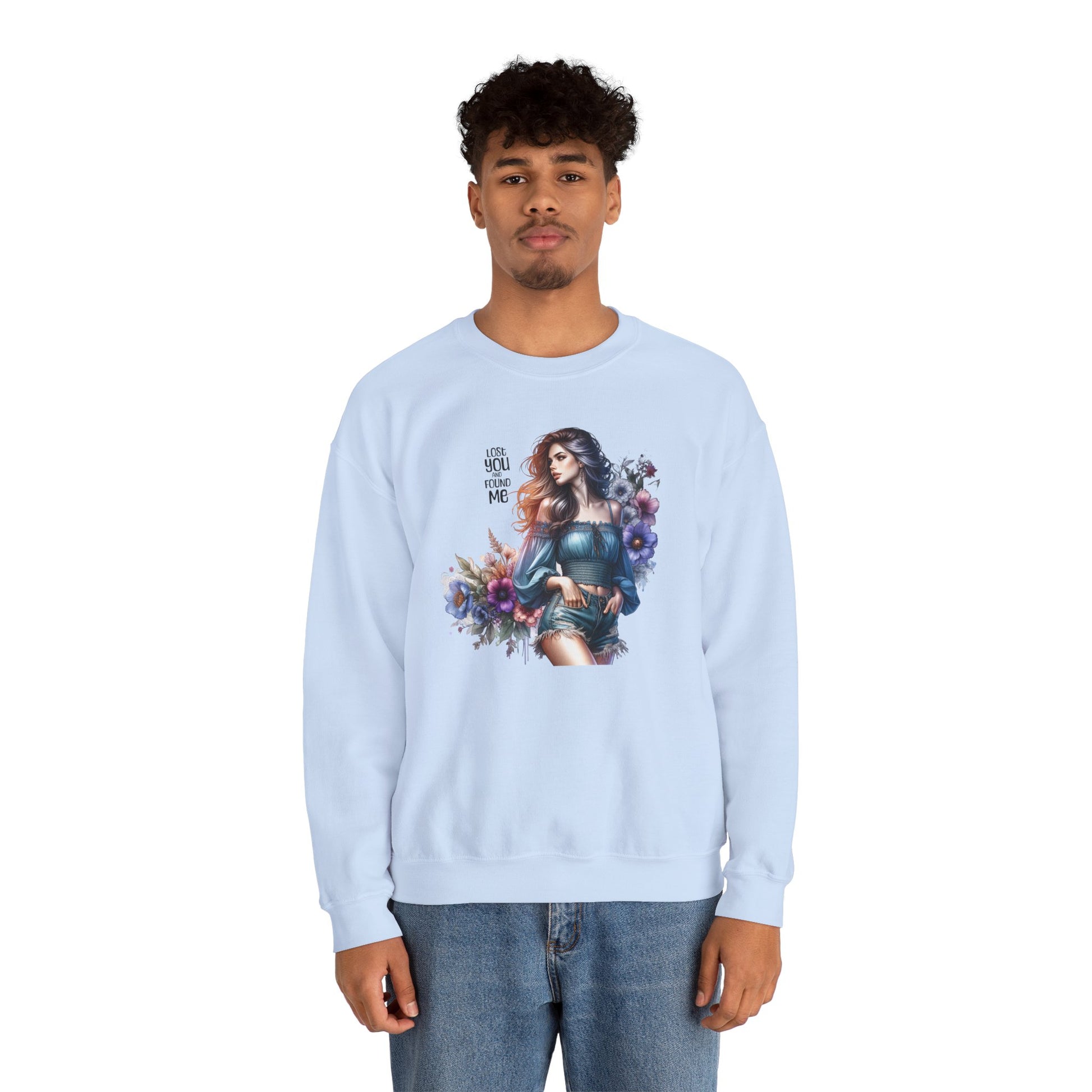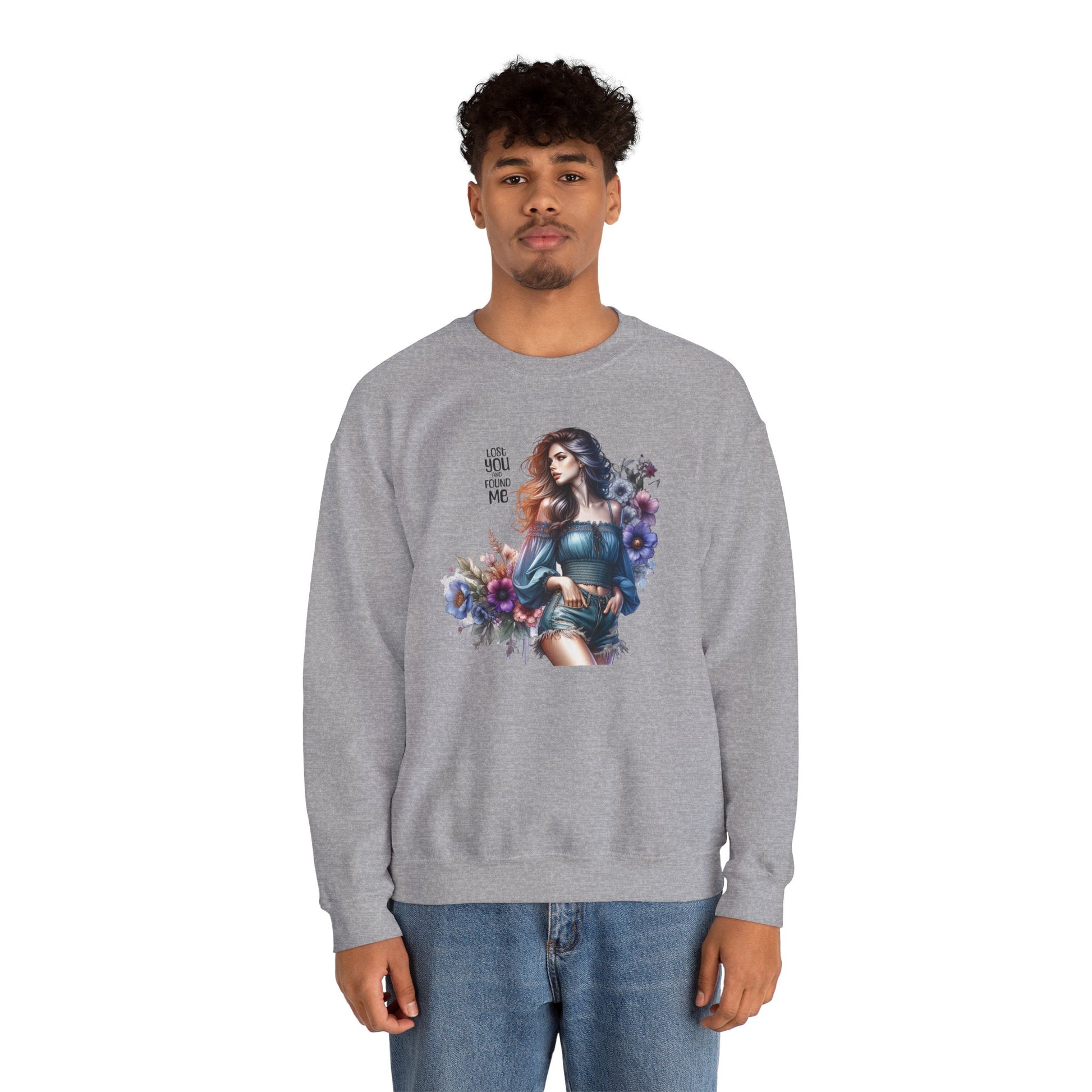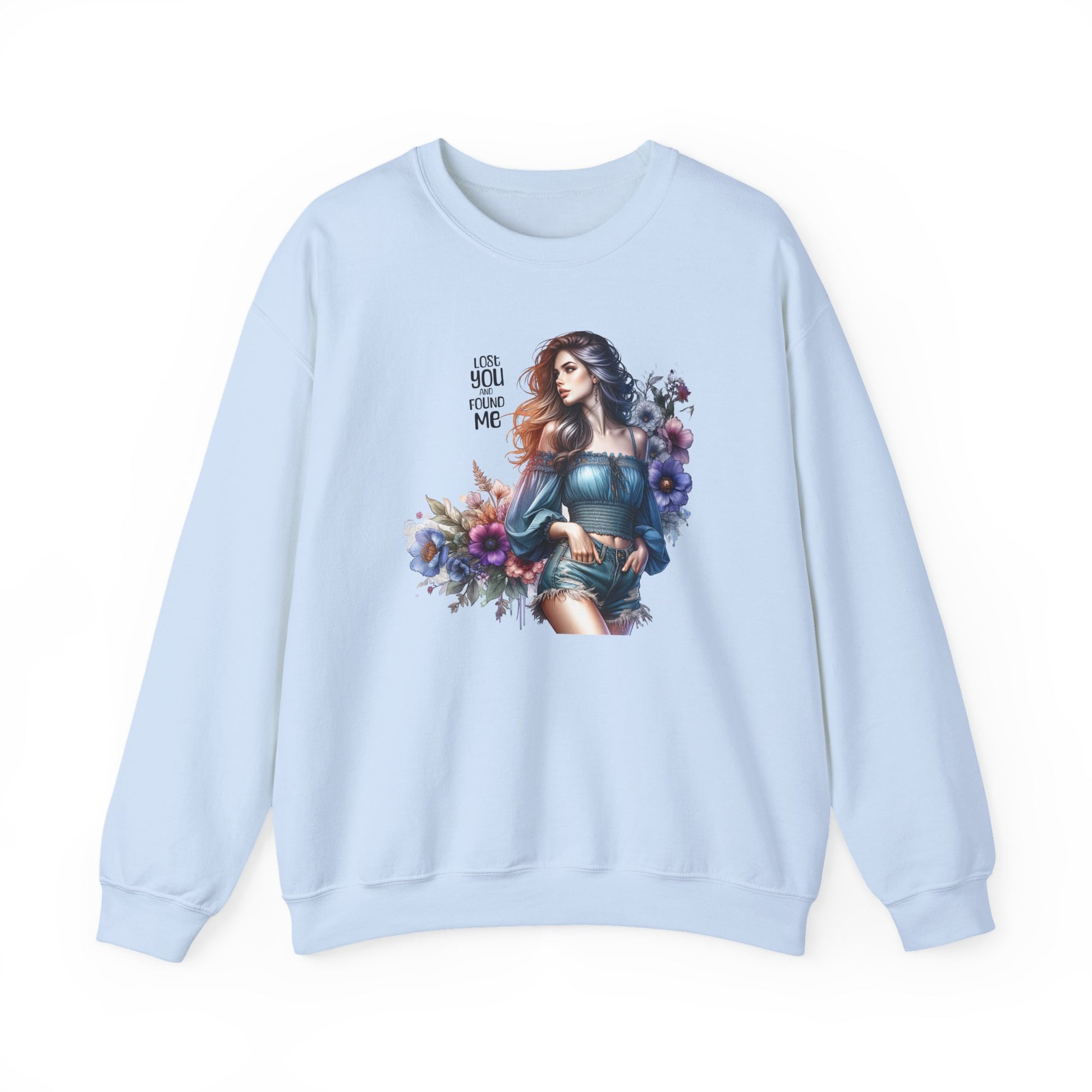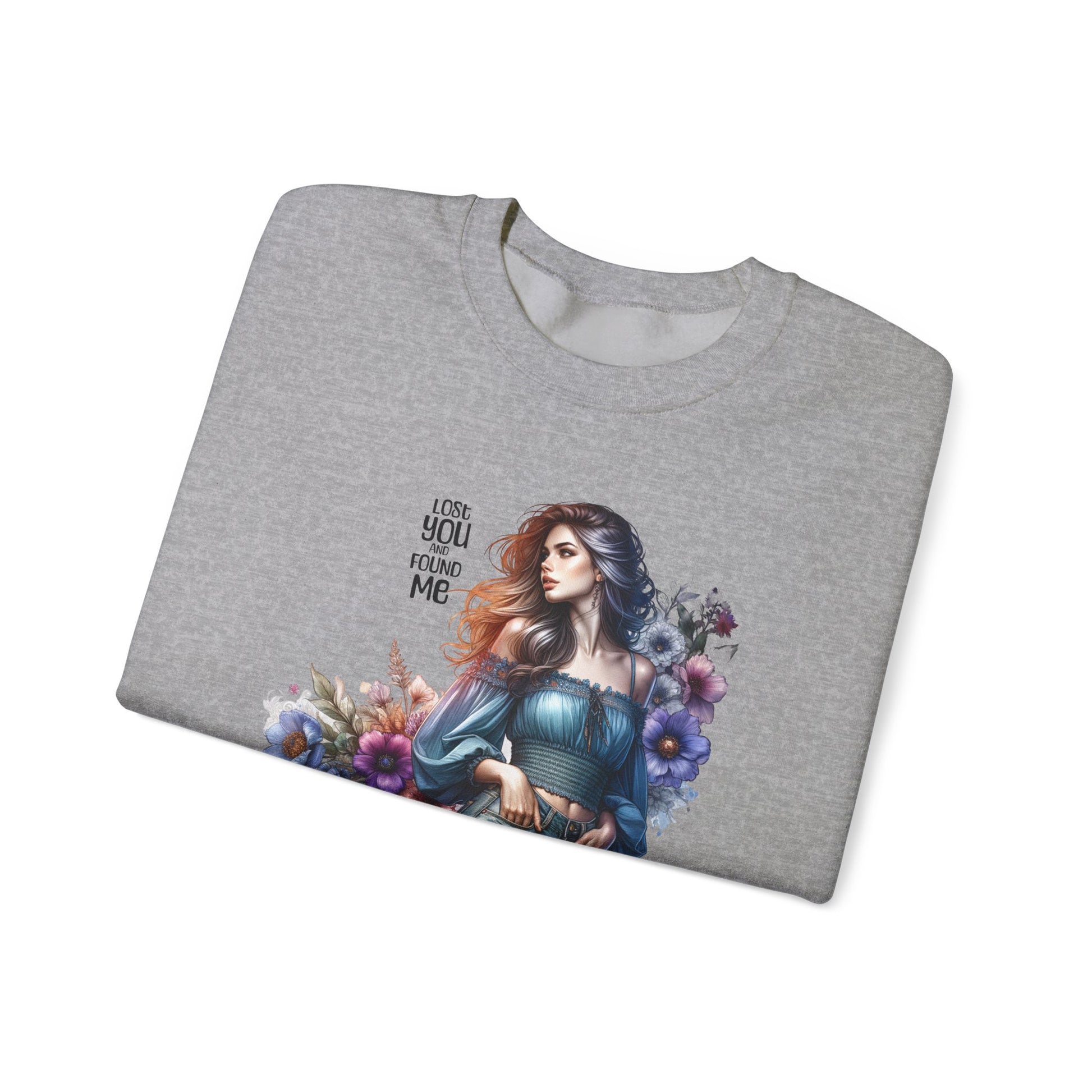 Lost You And Found Me Whimsical Floral Crewneck Sweatshirt | 'Until You Came to Me' Quote | Cozy Gift for Her, Floral Sweatshirt, Relaxed Style, Casual Wear