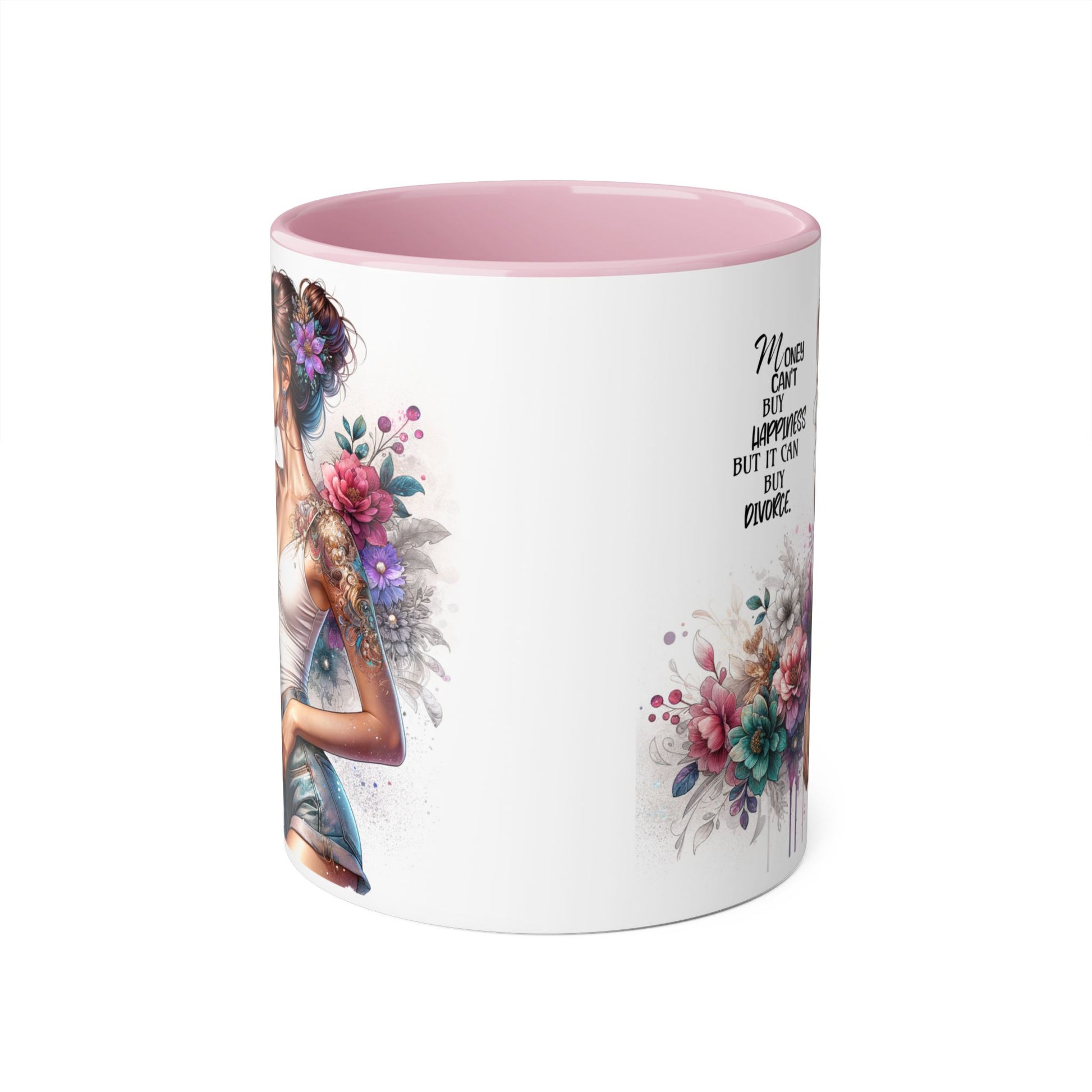 Money Can't Buy Happiness But It Can Buy Divorce Humoristic Boho Floral Accent Mug, Money Can't Buy Happiness, Gift for Coffee Lovers, Inspirational Drinkware, Unique Kitchen Decor