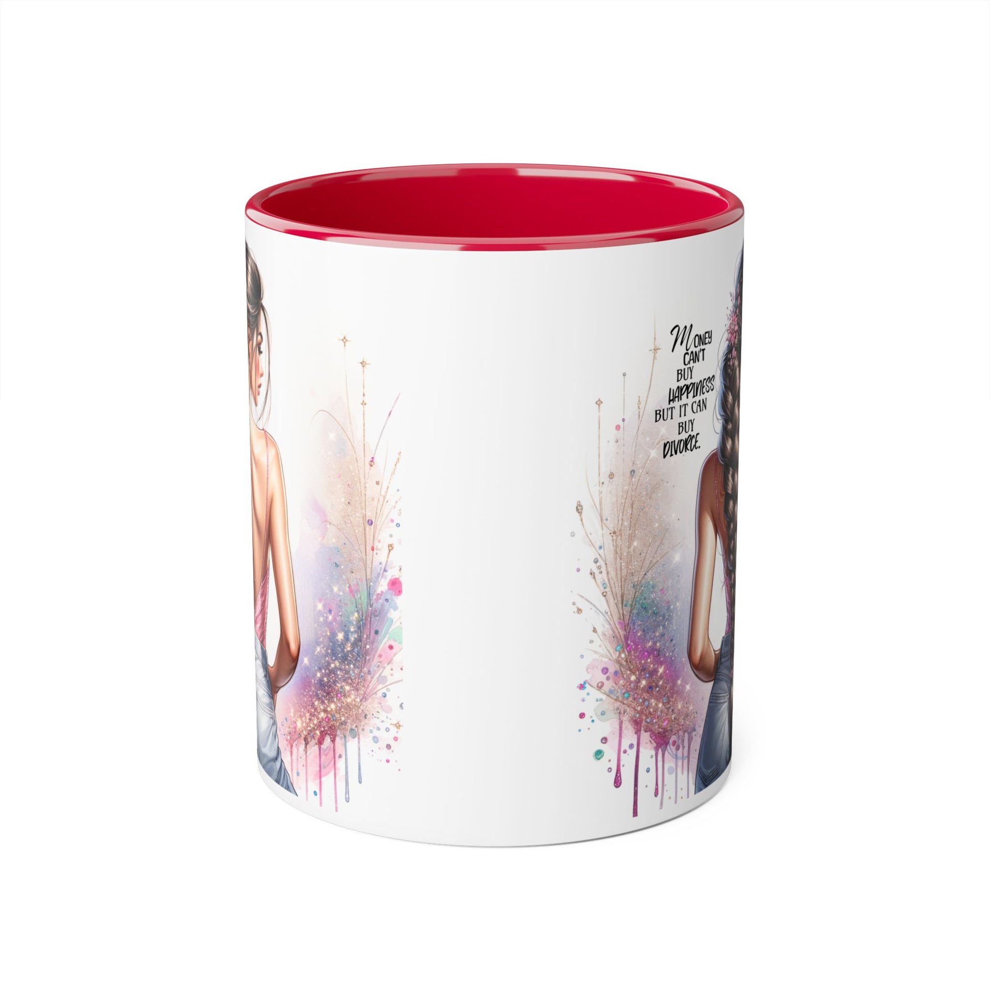 Money Can't Buy Happiness But It Can Buy Divorce Humoristic Empowered Woman Accent Mug, Inspirational Coffee Cup, Gift for Her, Motivational Mugs, Birthday Present, Unique Drinkware