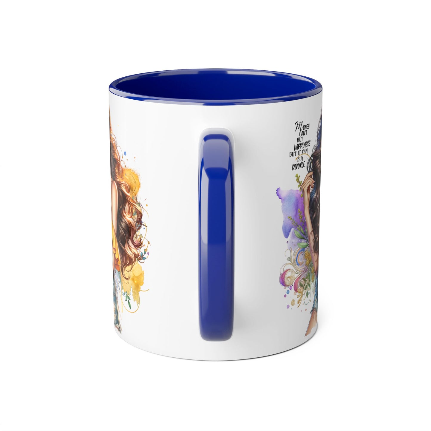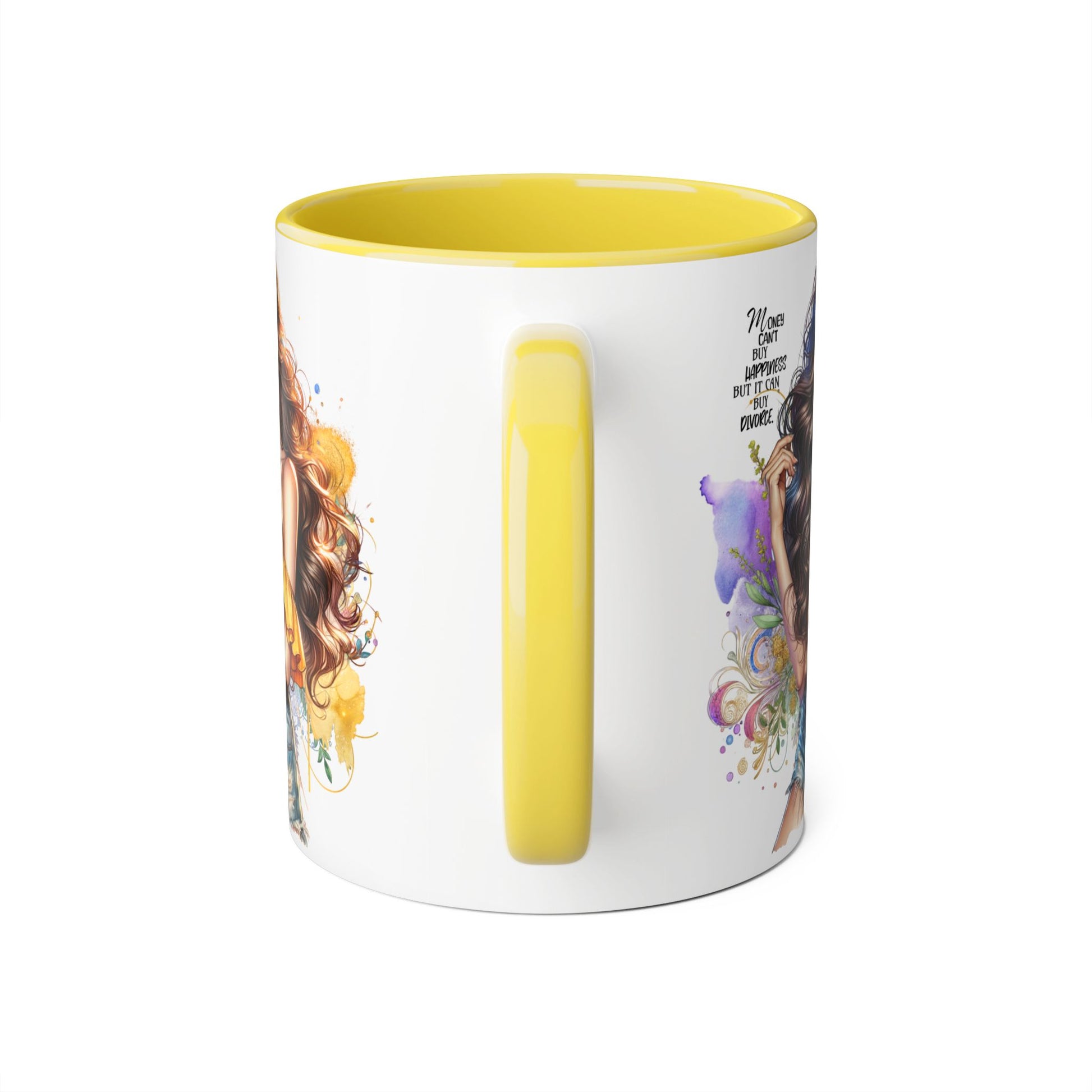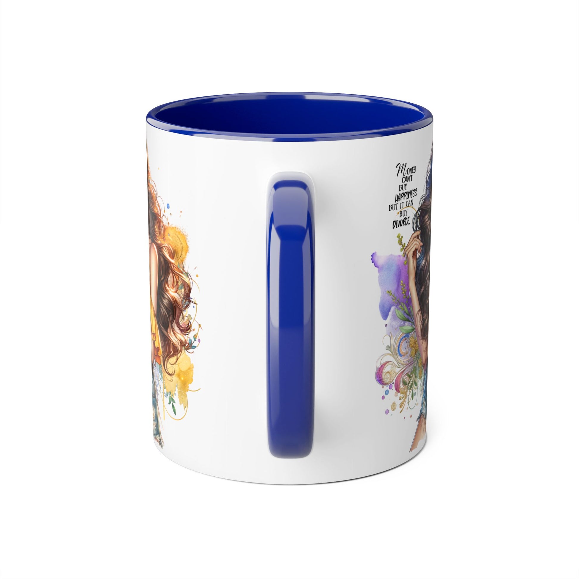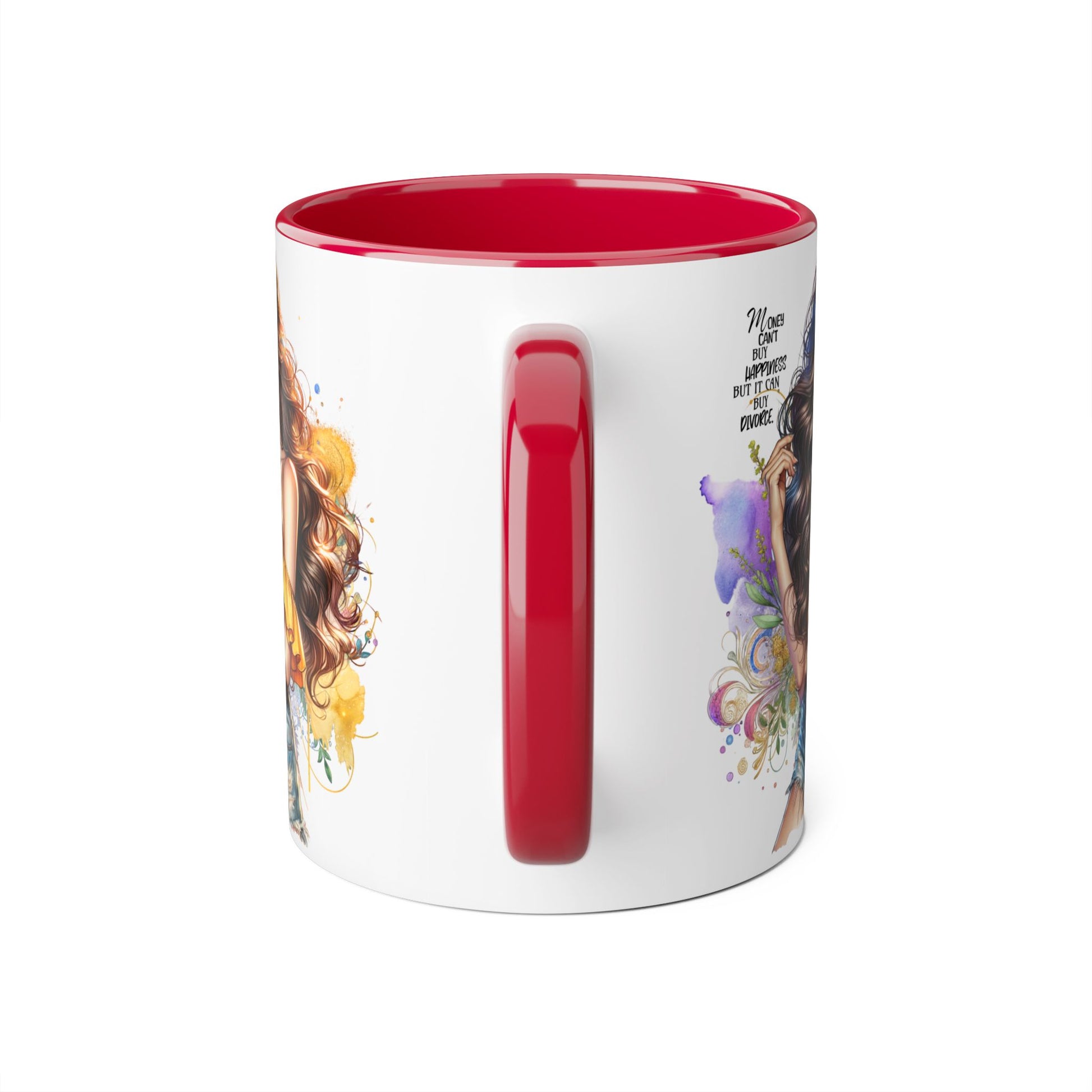 Money Can't Buy Happiness But It Can Buy Divorce Humoristic Empowering Accent Mug, Inspirational Coffee Cup, Artful Drinkware for Self-Care, Perfect Gift for Birthdays, Motivational Decor