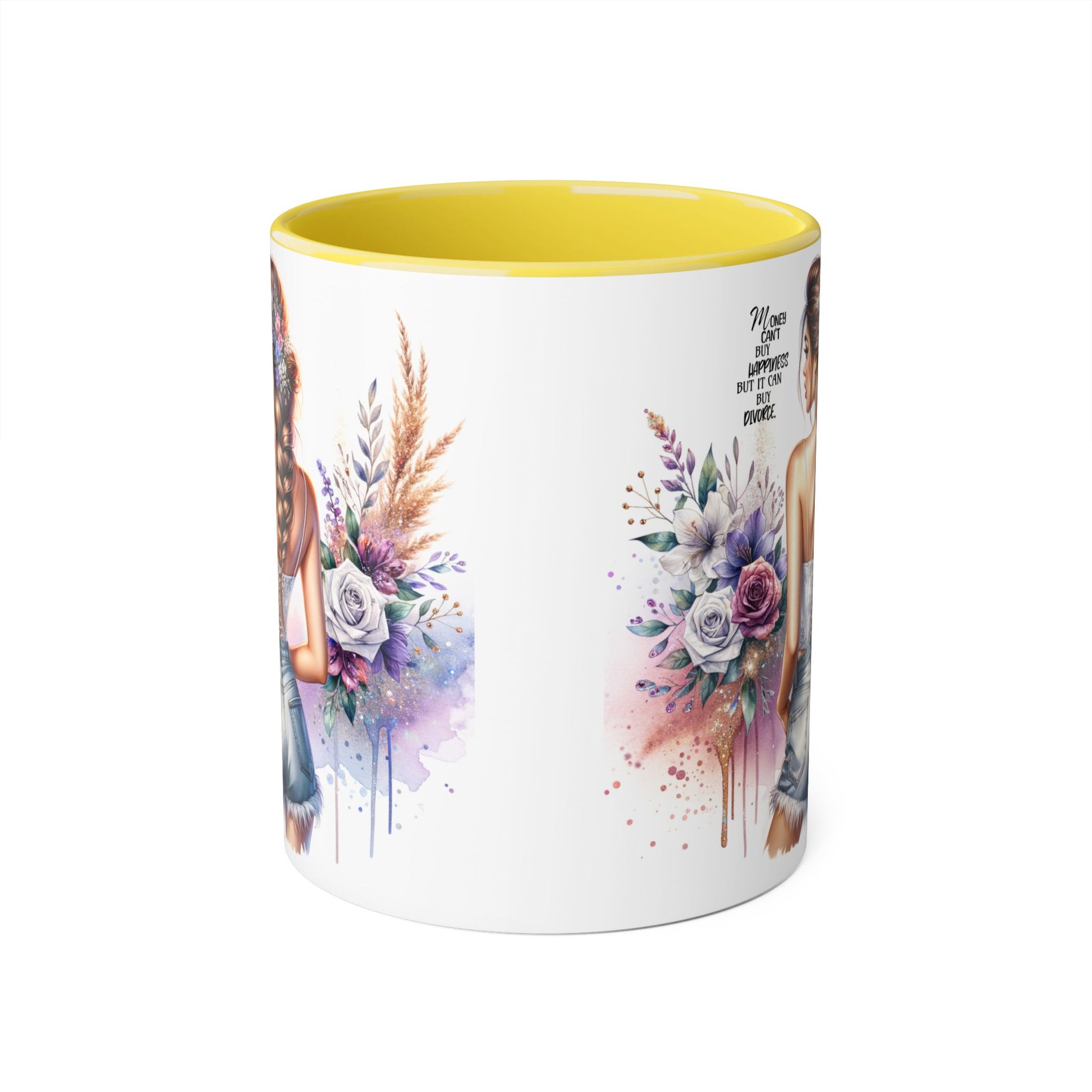 Money Can't Buy Happiness But It Can Buy Divorce Humoristic Floral Art Accent Mug, Inspirational Gift for Her, Coffee Cup with Quotes, Unique Ceramic Drinkware, Mother's Day Present