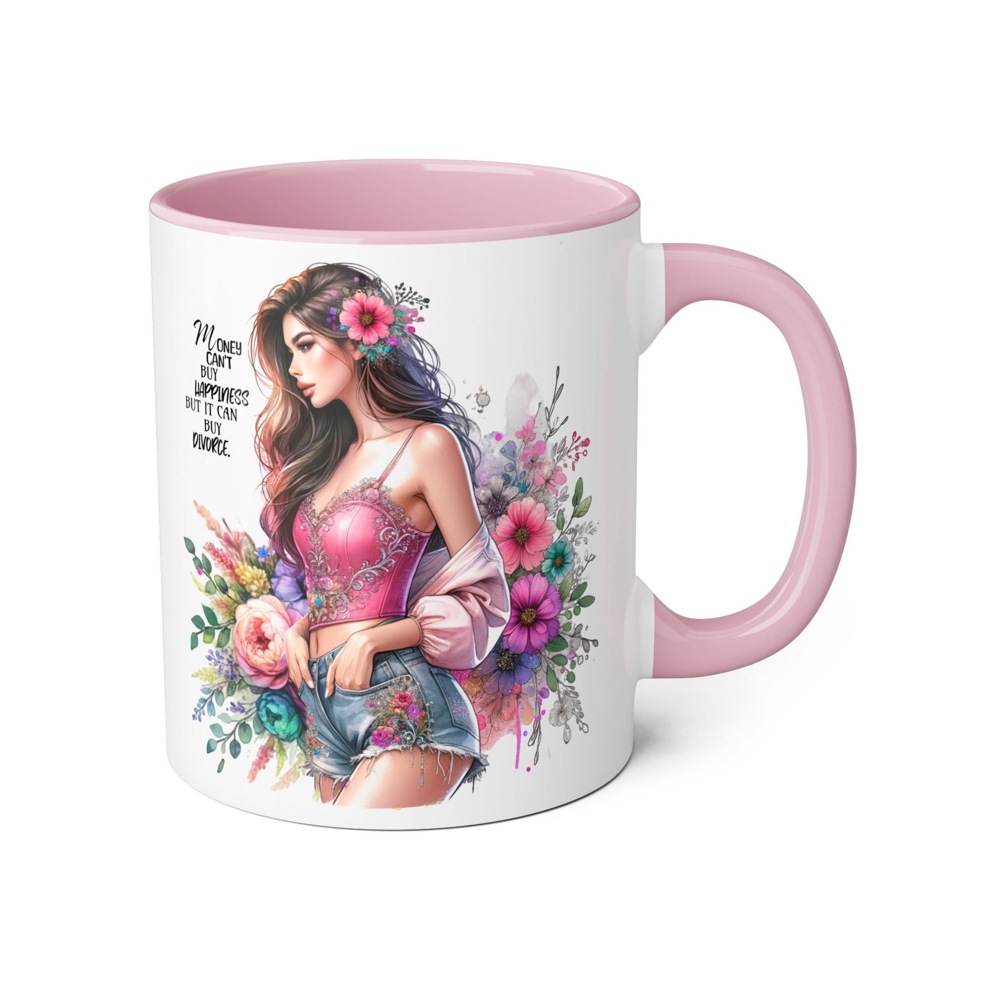 Money Can't Buy Happiness But It Can Buy Divorce Humoristic Floral Inspirational Mug, Gift for Friends, Coffee Cup, Tea Lover, Flower Design, Motivational Quote, Birthday Gift