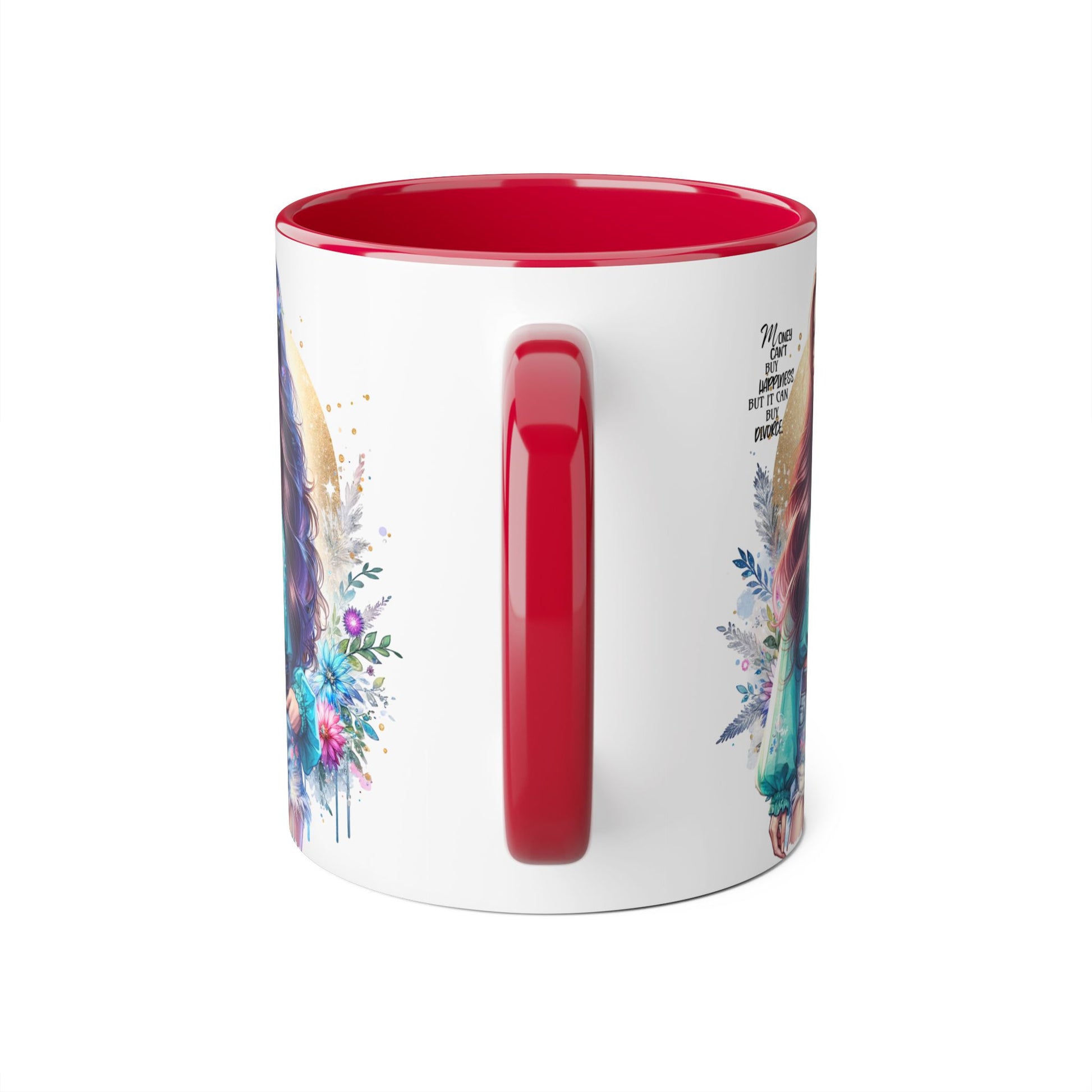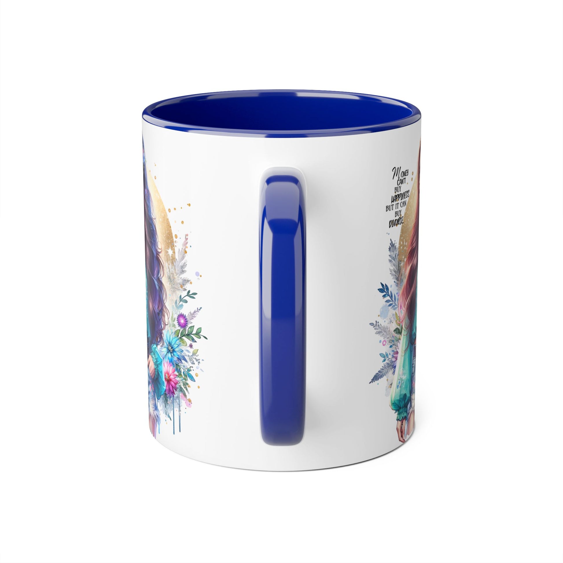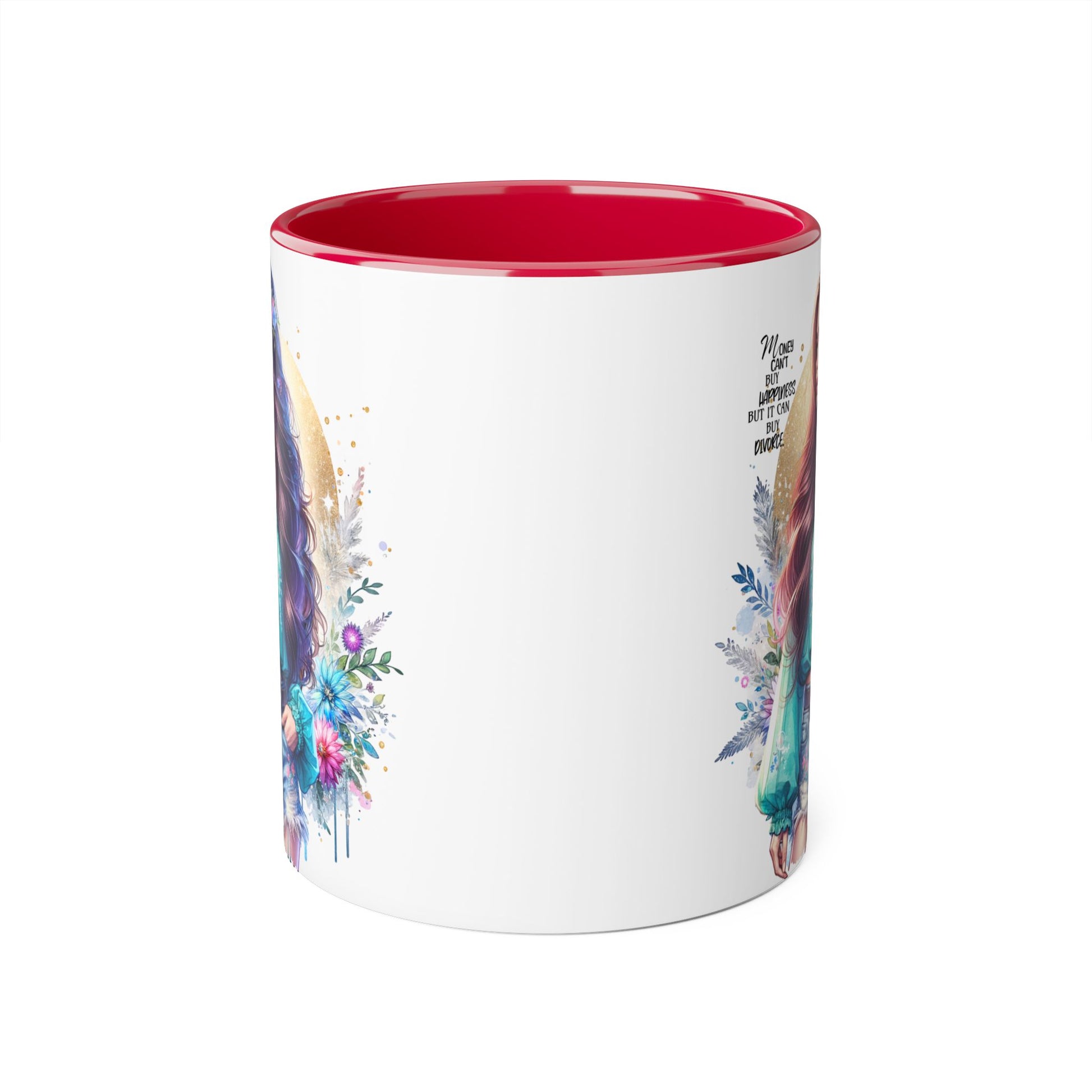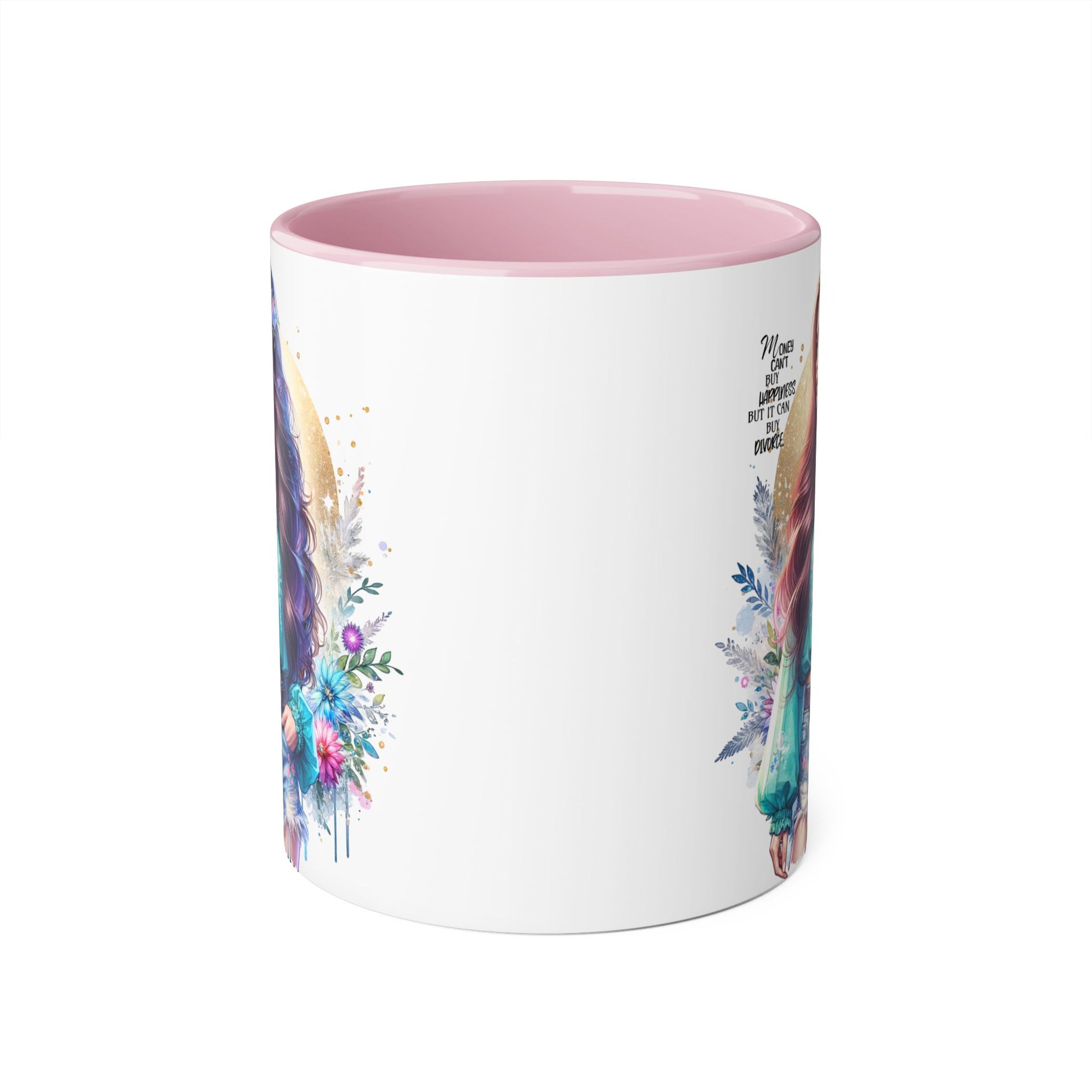 Money Can't Buy Happiness But It Can Buy Divorce Humoristic Inspirational Accent Mug, 11oz Coffee Cup for Boho Lovers, Unique Gift for Women, Flower Art Mug, Home Decor, Birthday Celebration