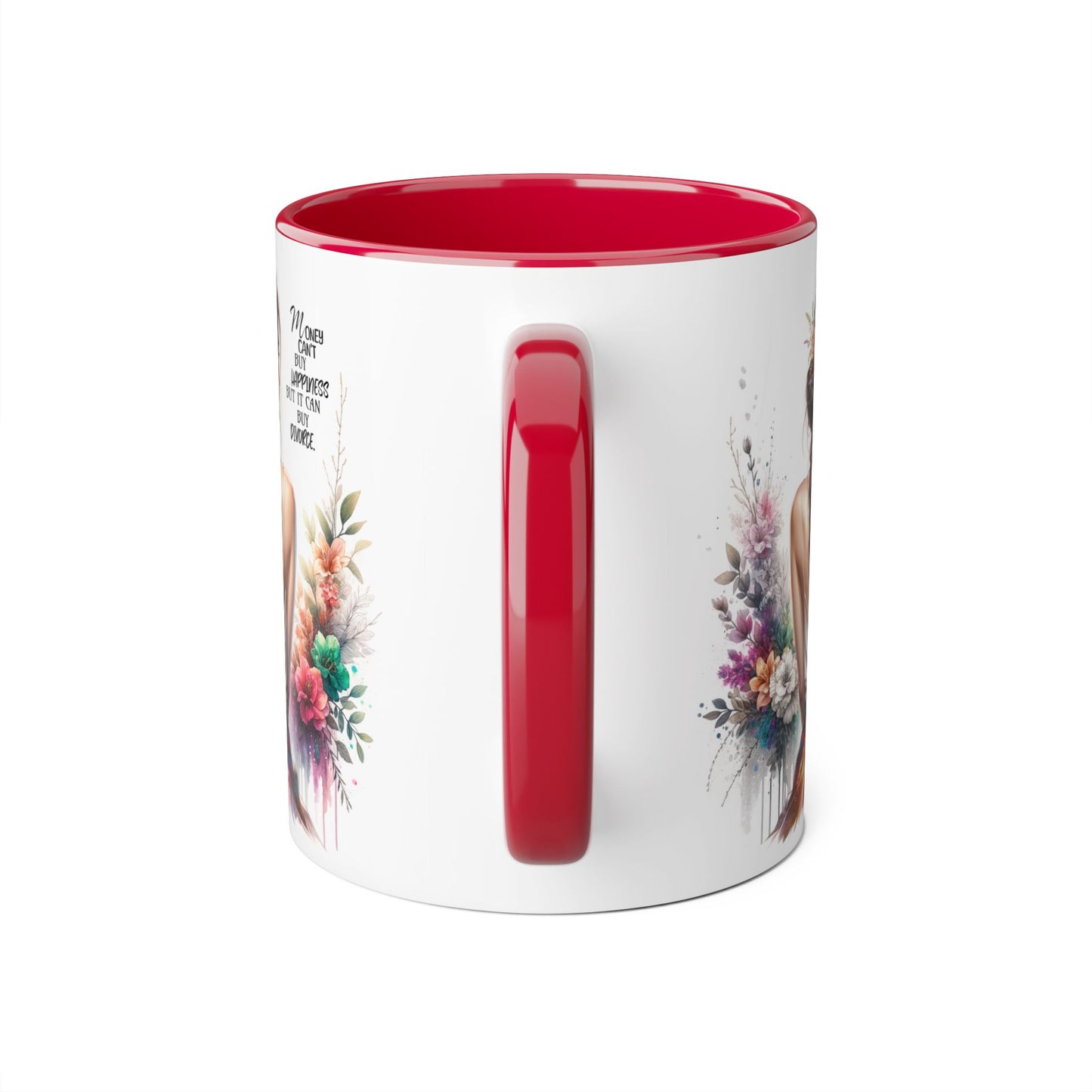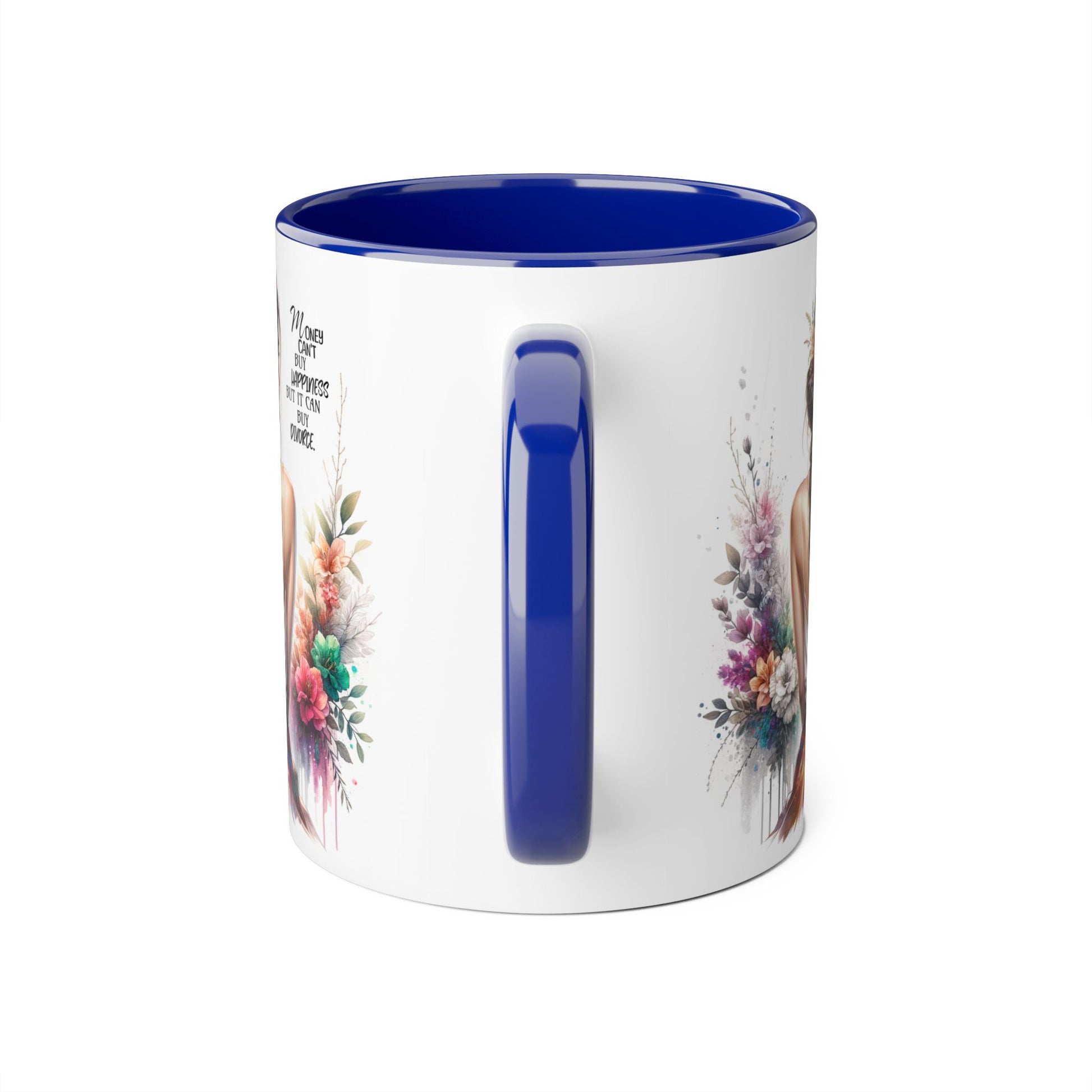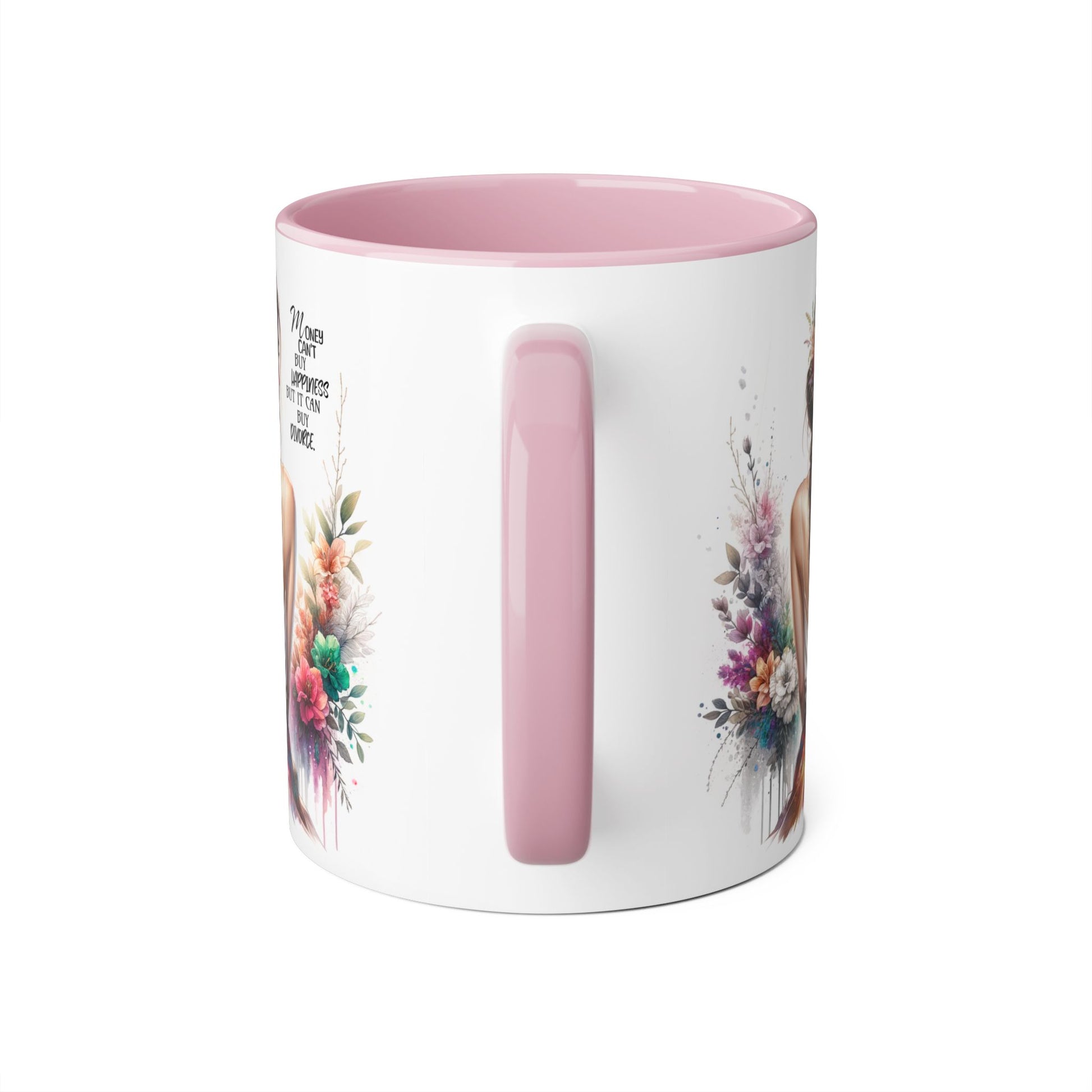 Money Can't Buy Happiness But It Can Buy Divorce Humoristic Inspirational Accent Mug, 11oz Coffee Cup for Women, Gift for Her, Floral Design, Motivational Quote Mug, Birthday Gift
