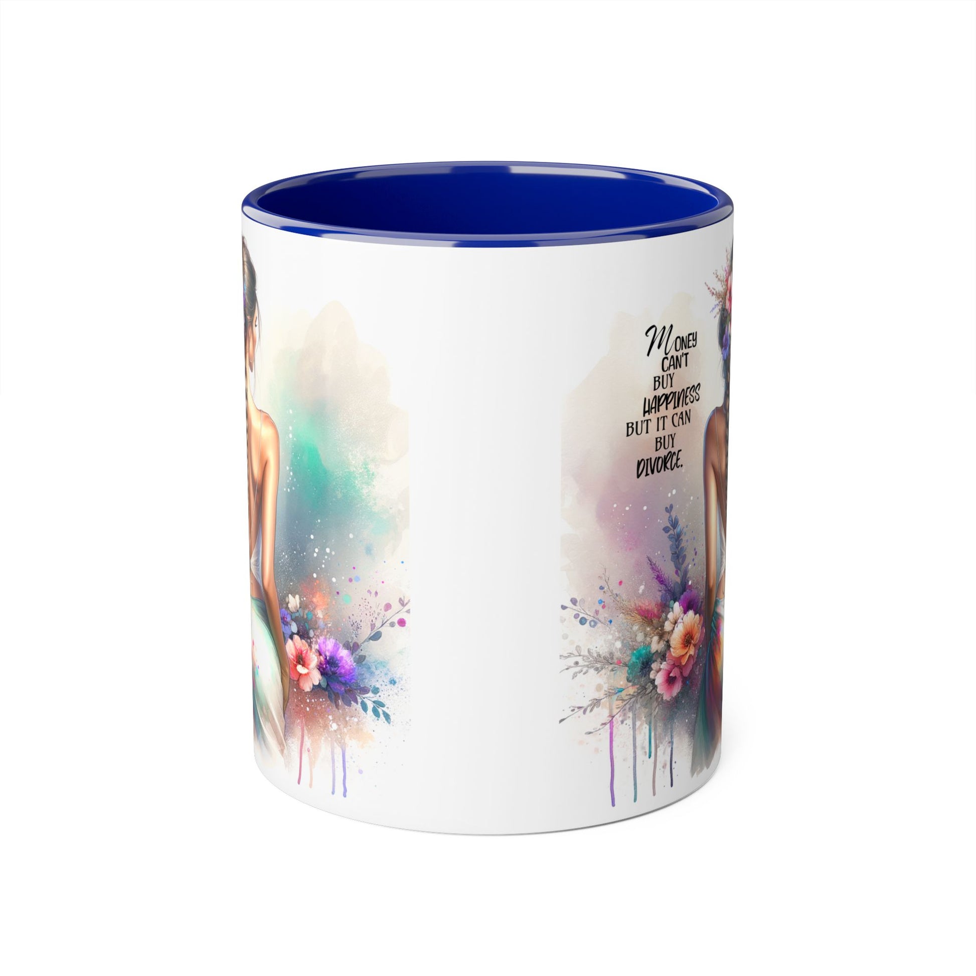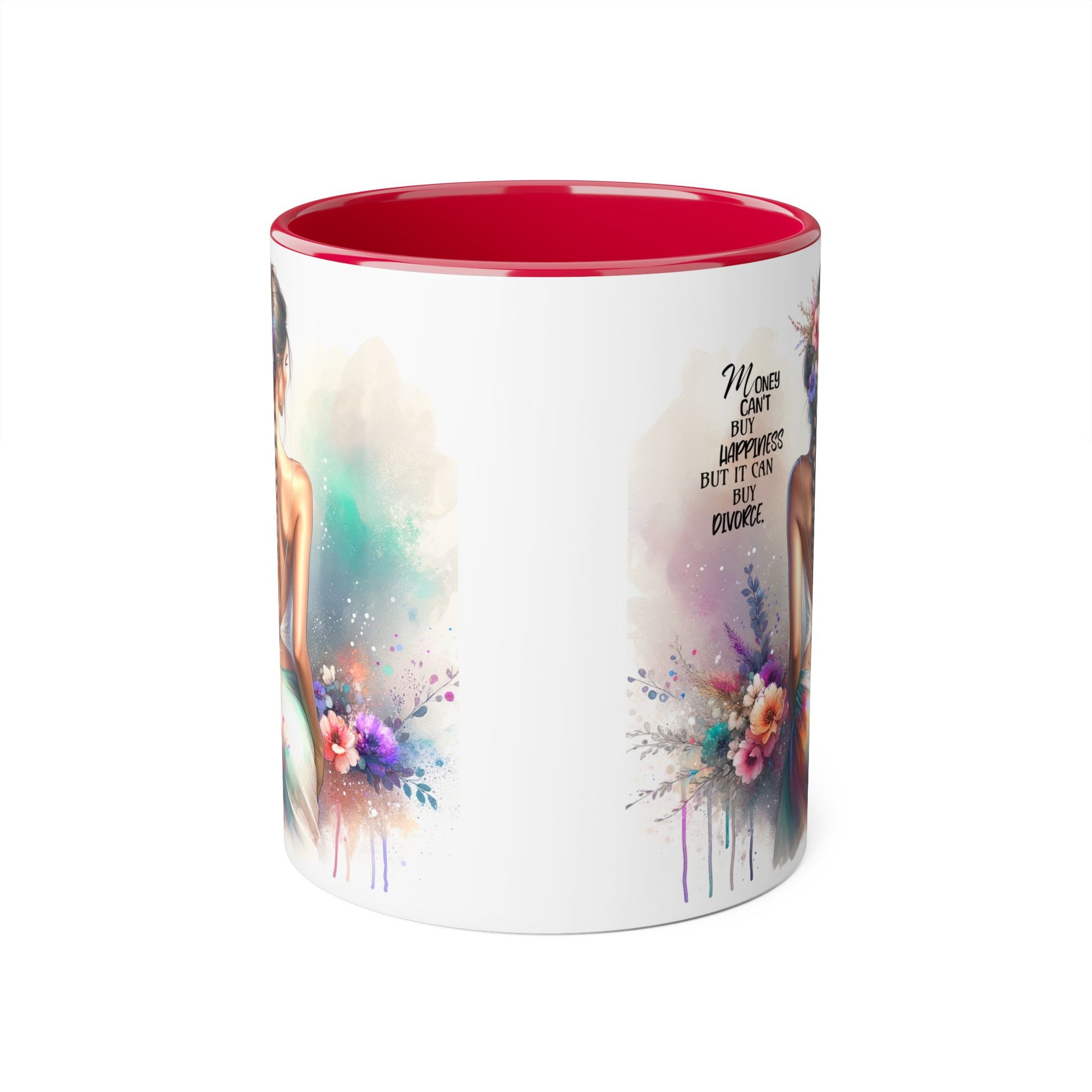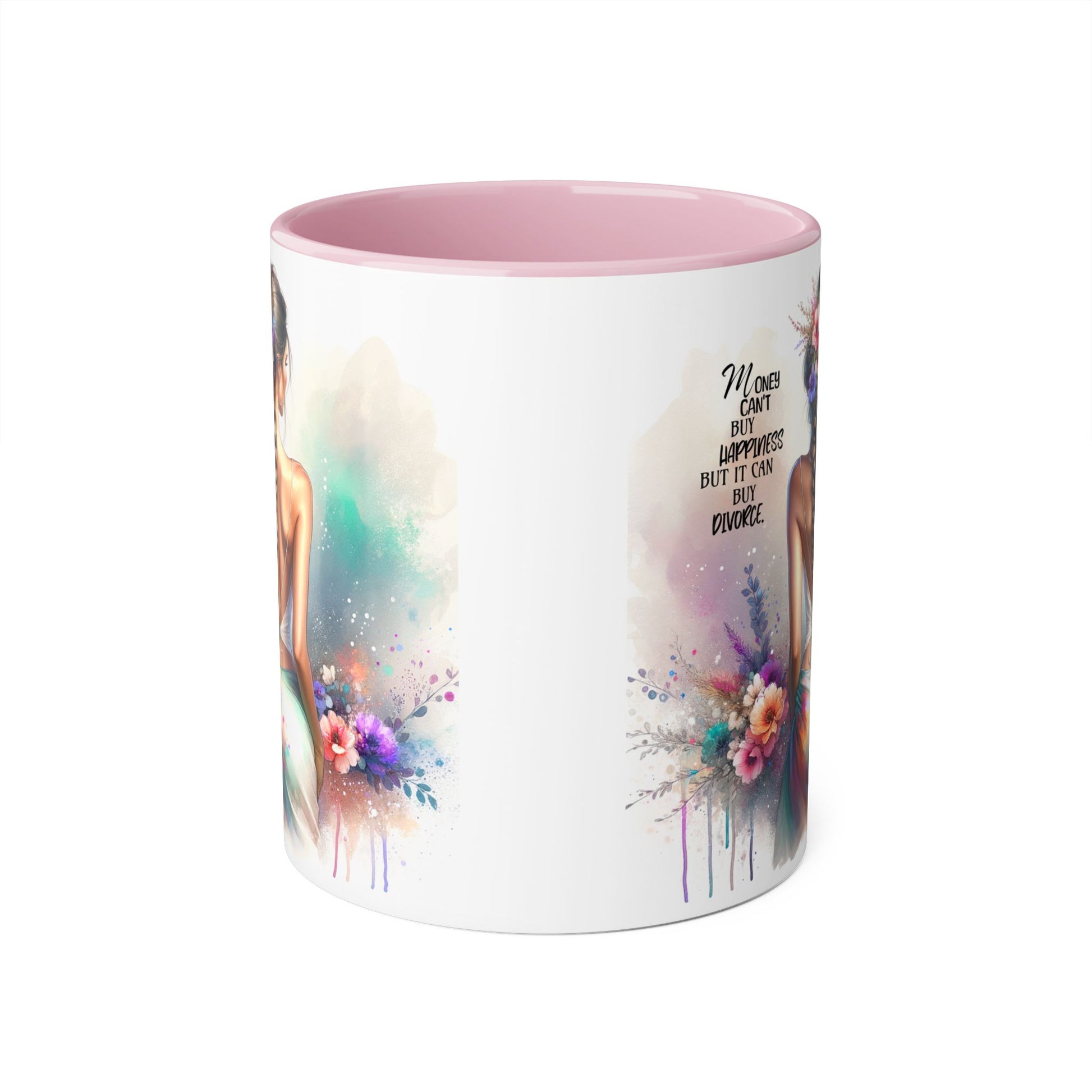 Money Can't Buy Happiness But It Can Buy Divorce Humoristic Inspirational Accent Mug, Motivational Coffee Cup, Gift for Mom, Floral Design, Home Decor, Self-Improvement