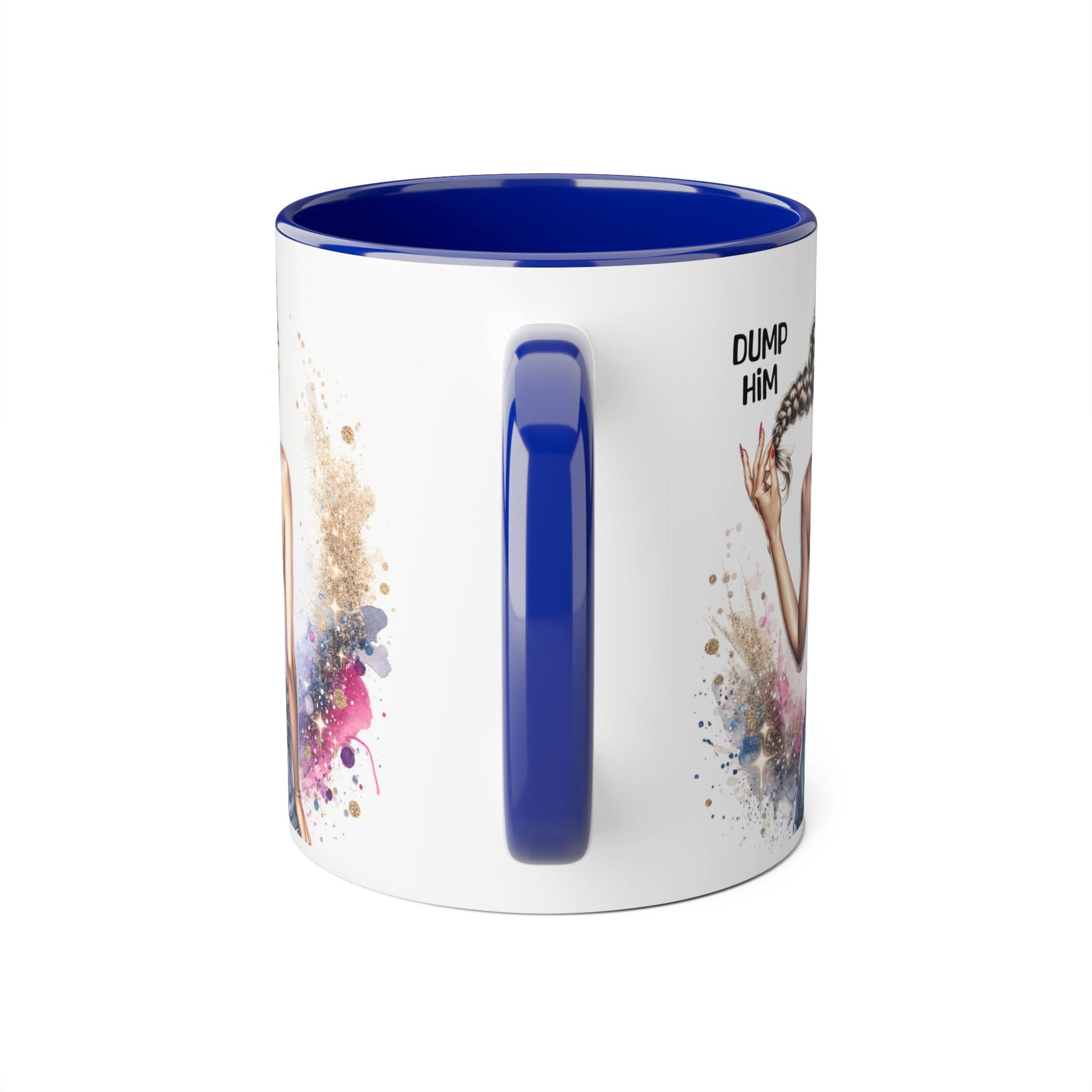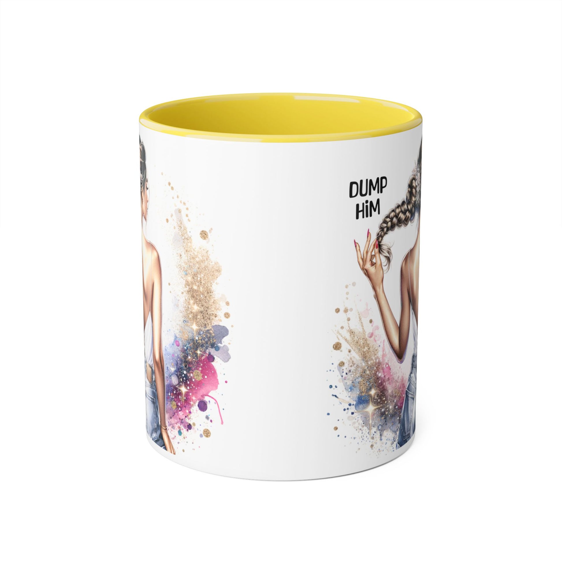 This Dump Him Accent Mug is perfect for adding a touch of humor to your morning coffee routine. With vibrant colors and a scratch-resistant finish, this 11oz mug is both dishwasher and microwave safe, making it a practical and fun addition to your kitchen. Ideal for those who enjoy starting their day with a laugh, this mug is great for gifting during Valentine's Day, birthdays, or just because.