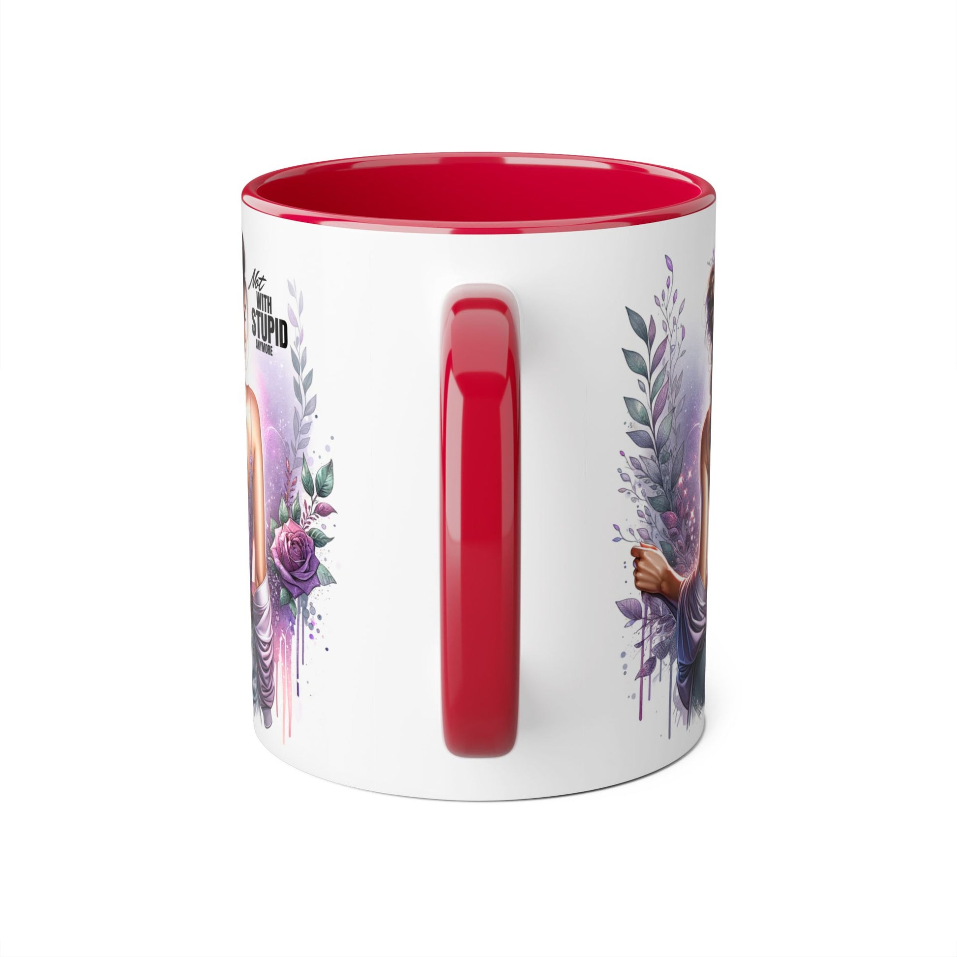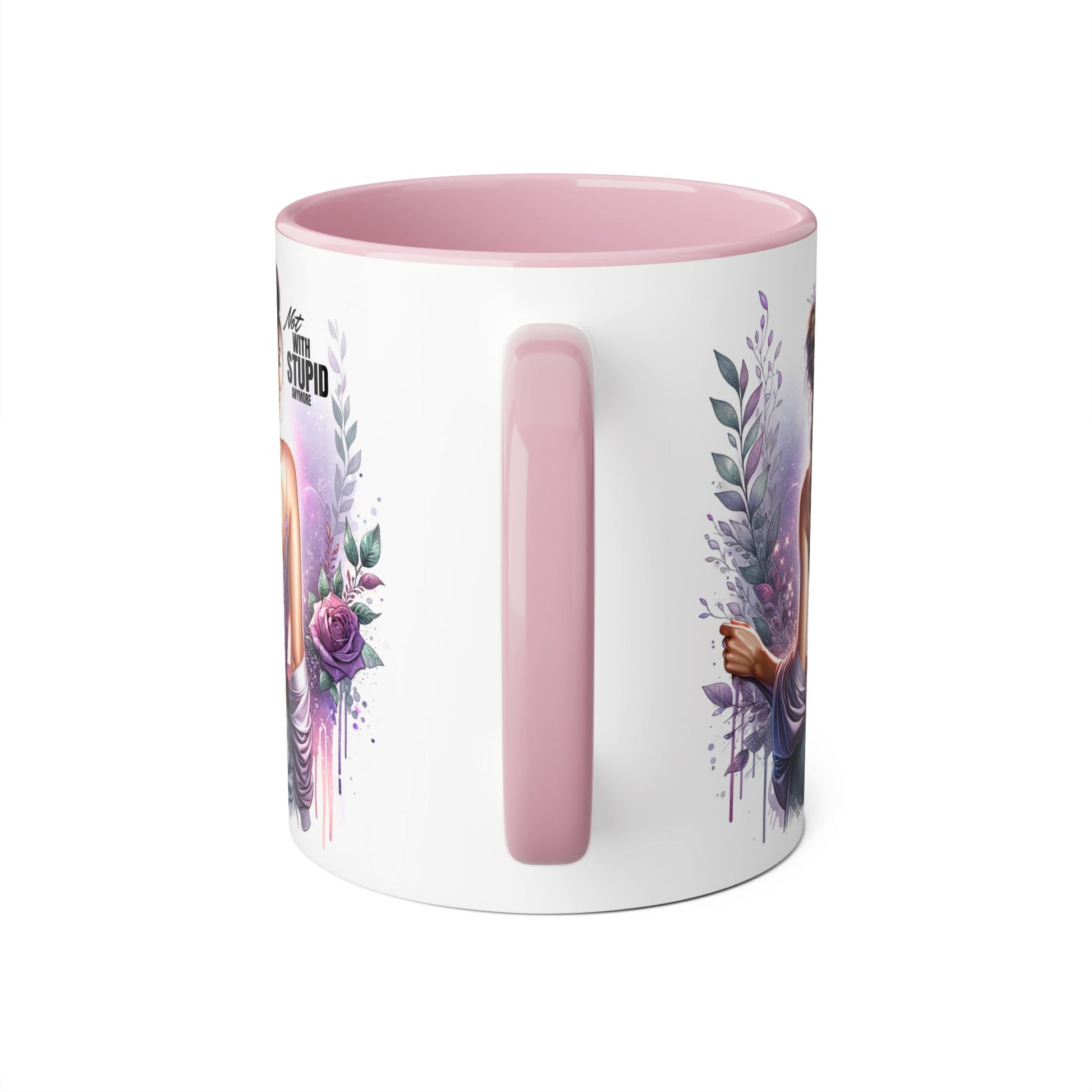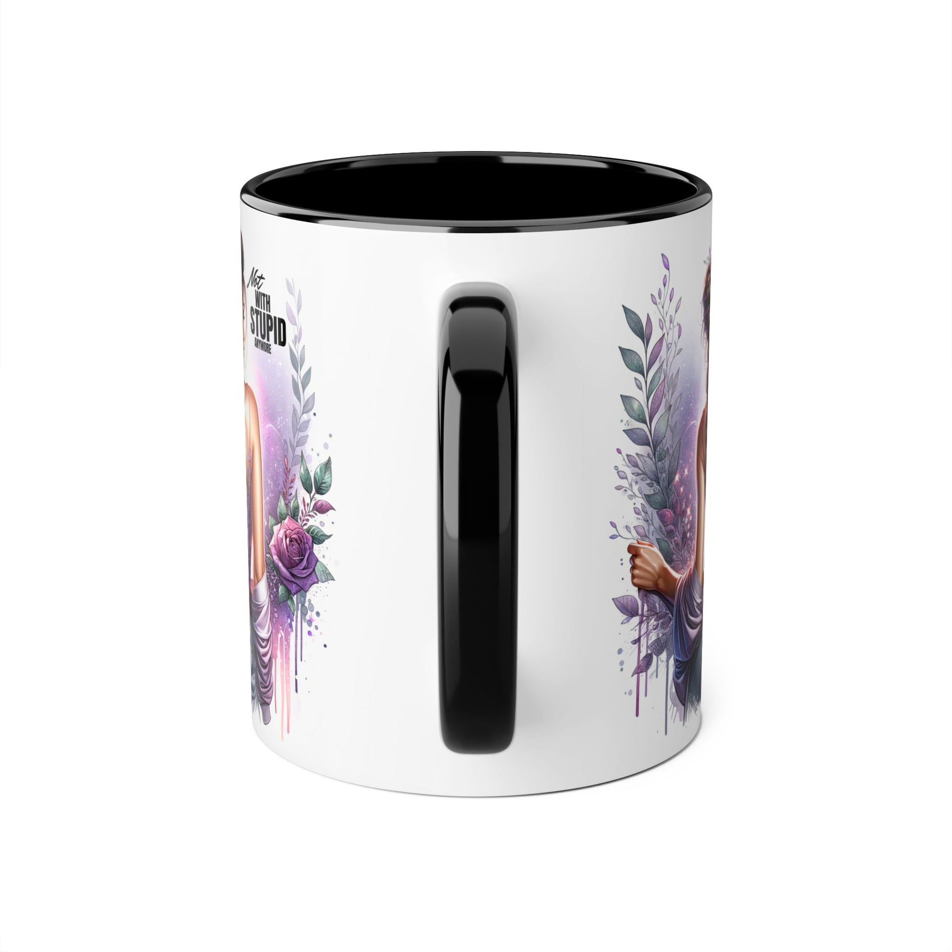 Not With Stupid Anymore Humoristic Bohemian Accent Mug, Artful Coffee Cup for Unique Gifts, Decorative Drinkware, Home Decor, Thoughtful Present