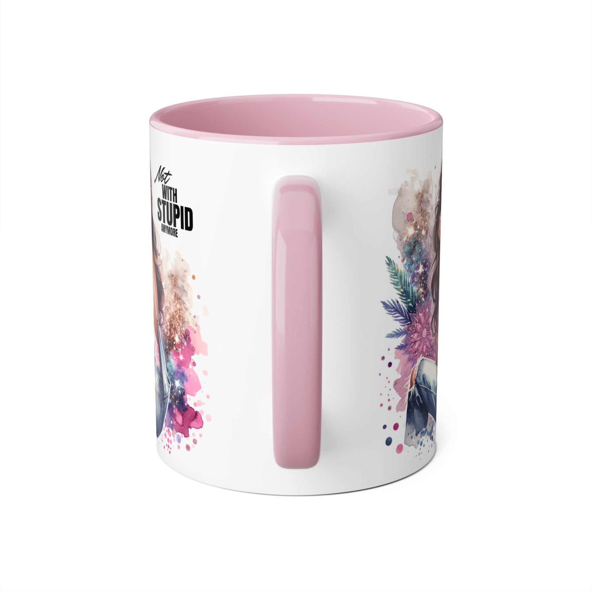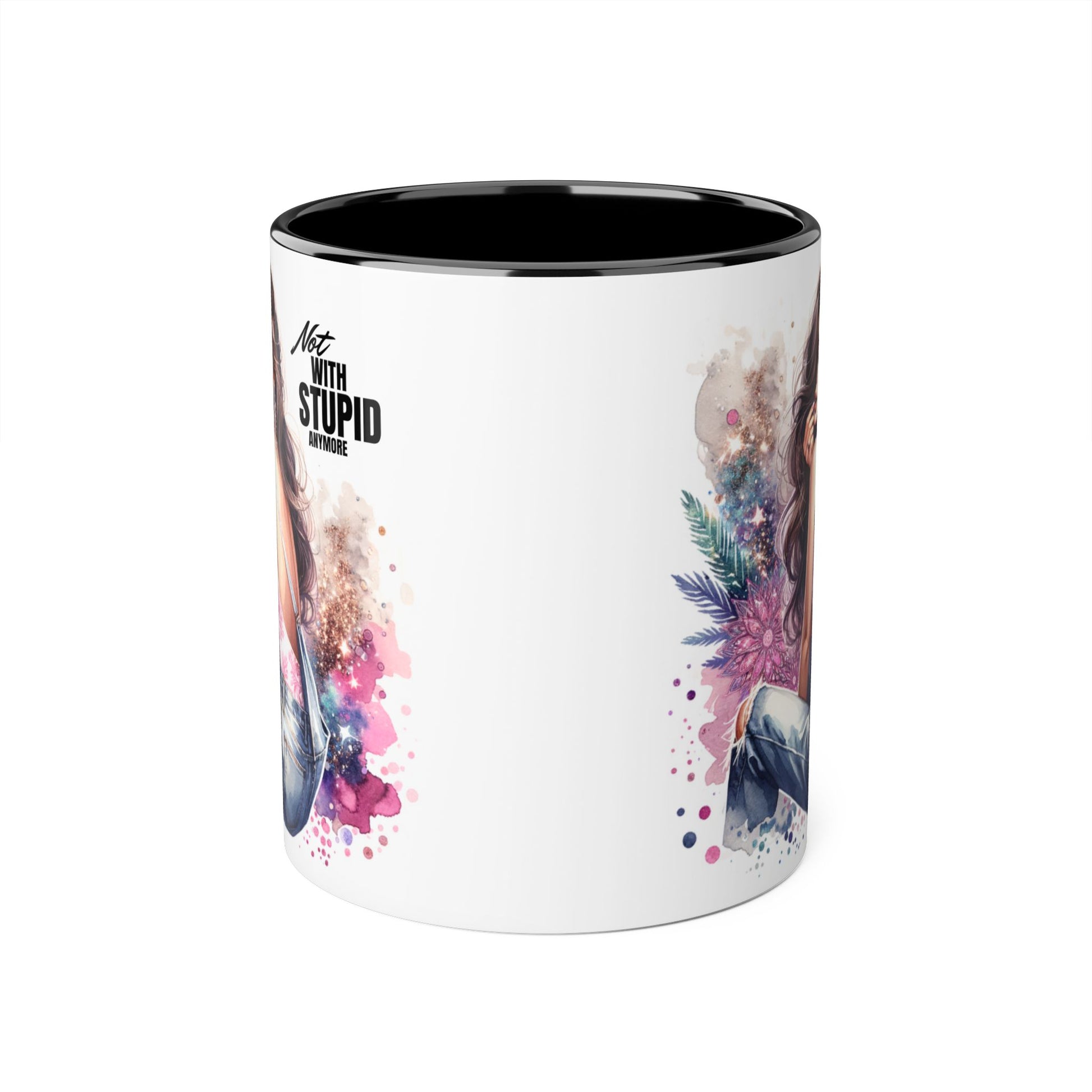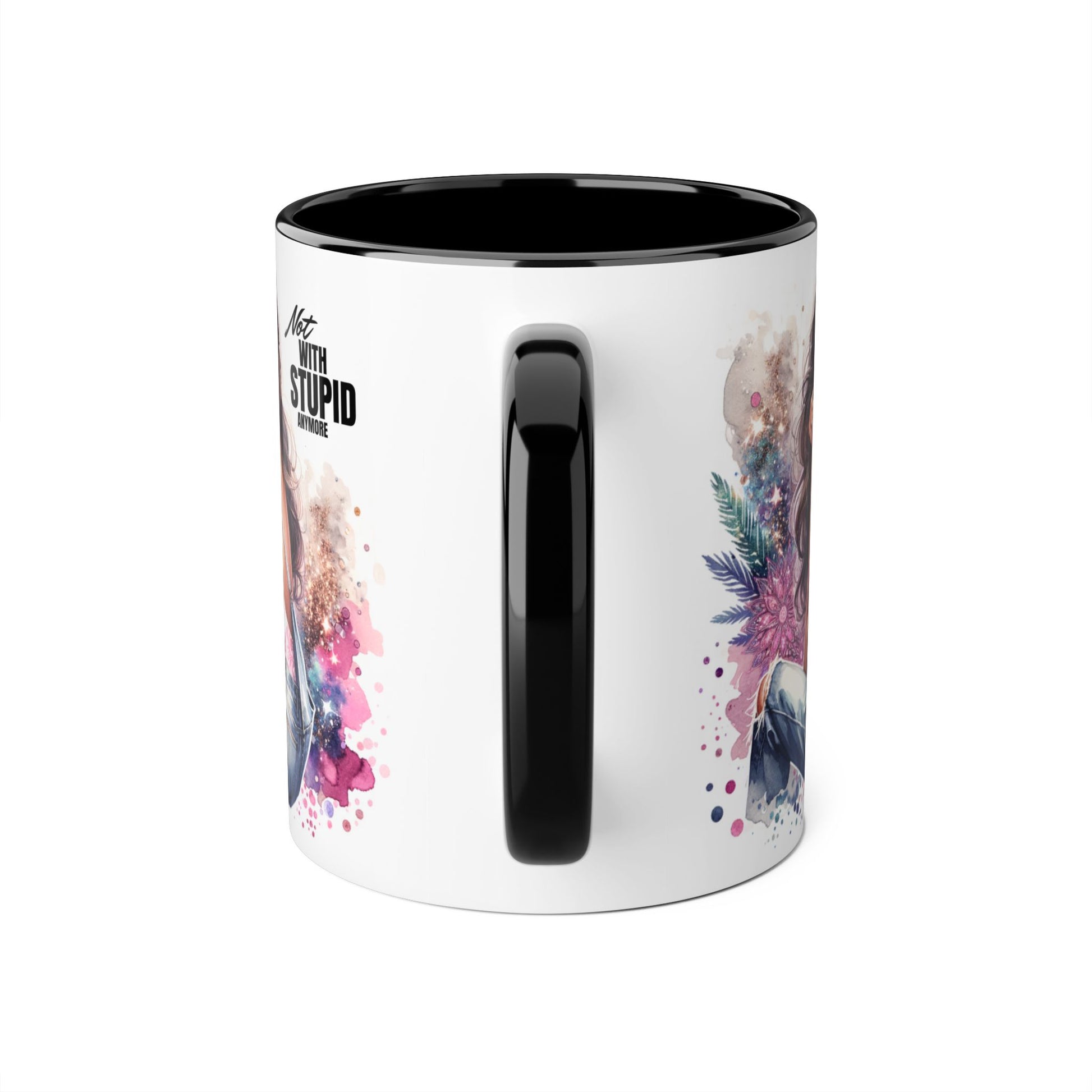 Not With Stupid Anymore Humoristic Stylish Accent Mug - Not With Stupid, Gift for Coffee Lovers, Unique Coffee Mug, Floral Design, Funny Mug for Friends, Sassy Gift