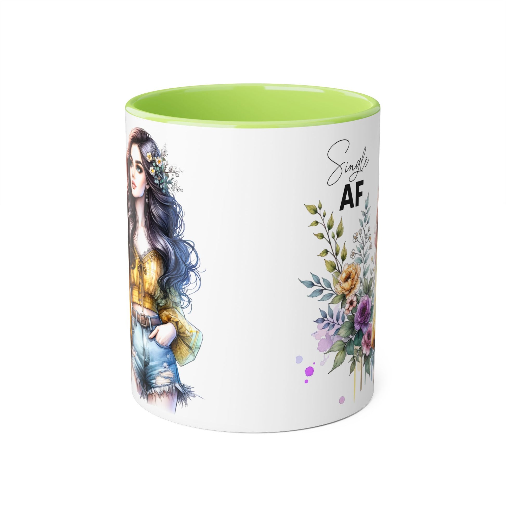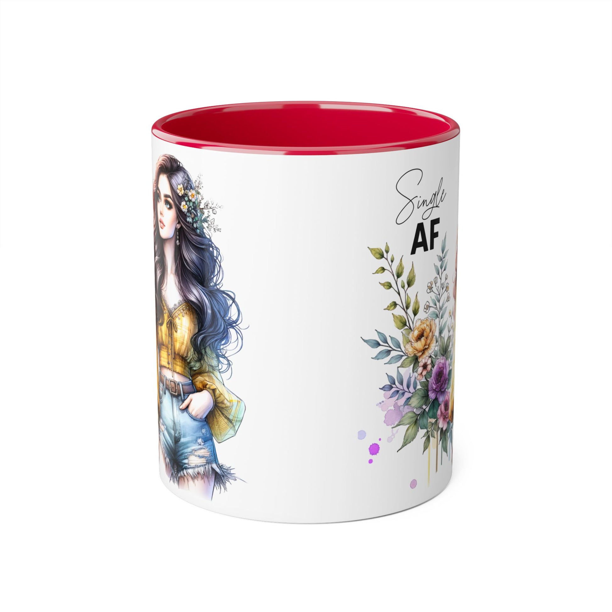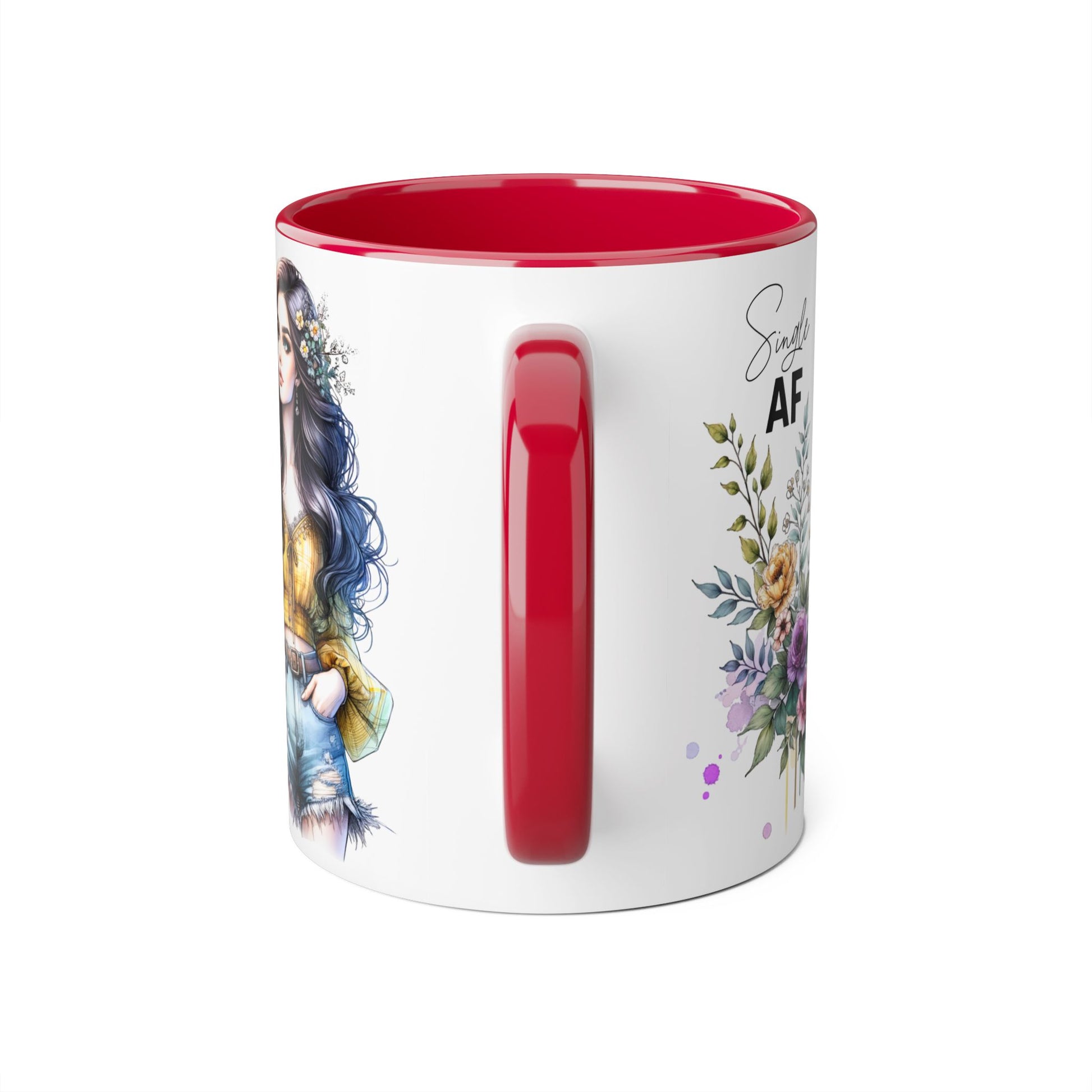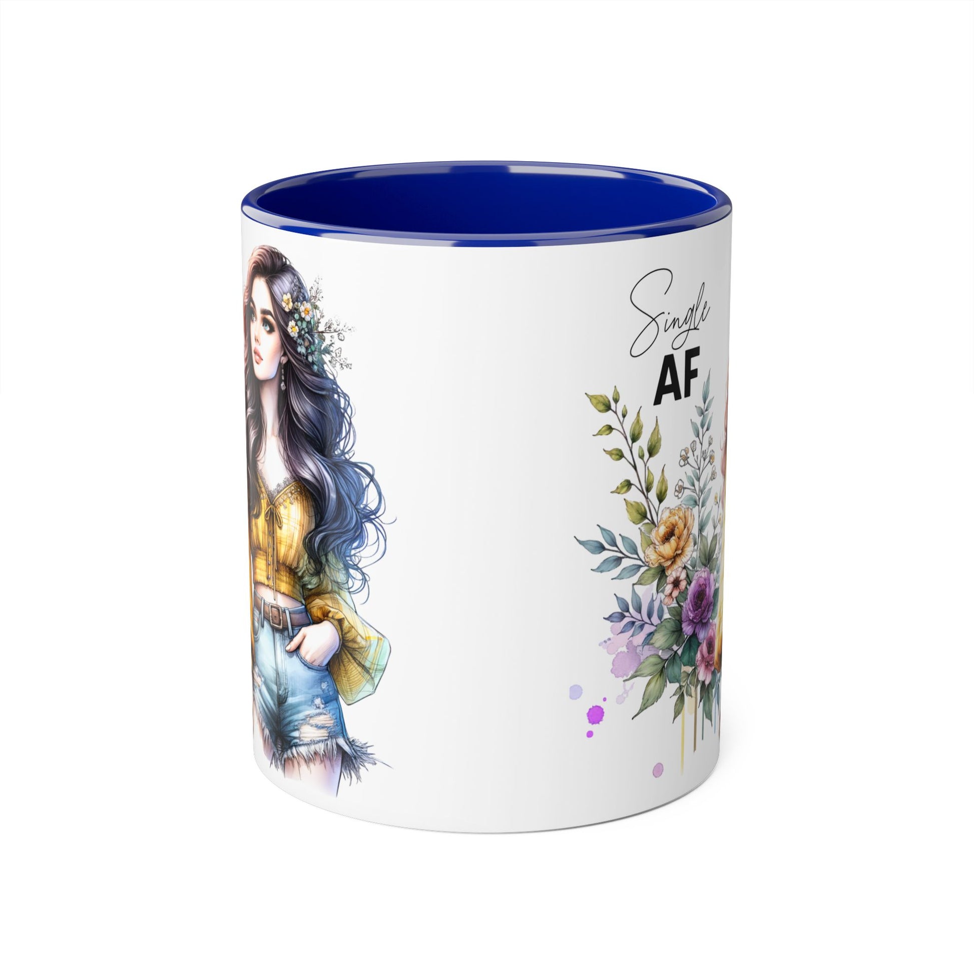 Single AF Accent Mug, Floral Coffee Cup, Gift for Single Friends, Cute Relationship Humor Mug, Funny Birthday Mug, Tea Lover Gift