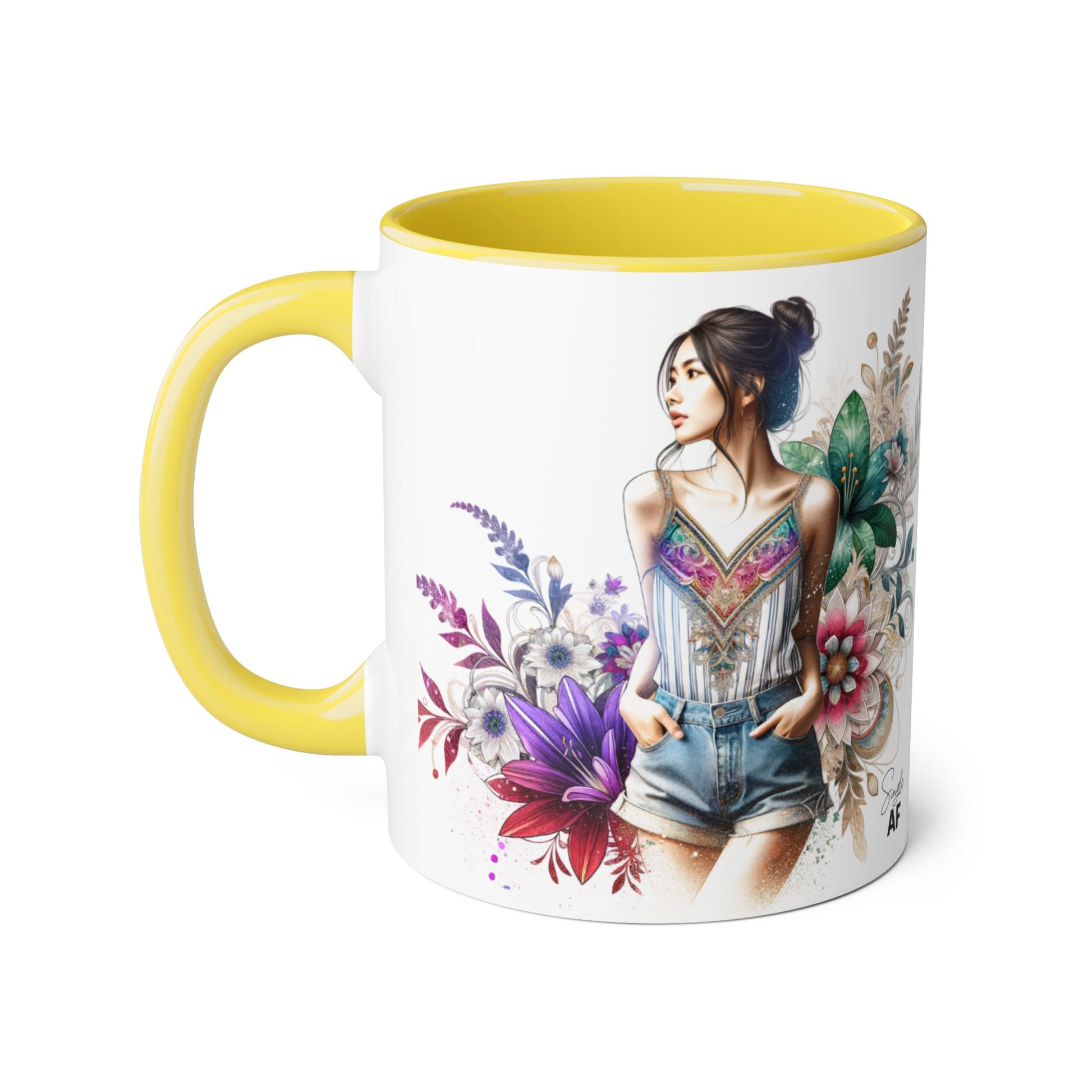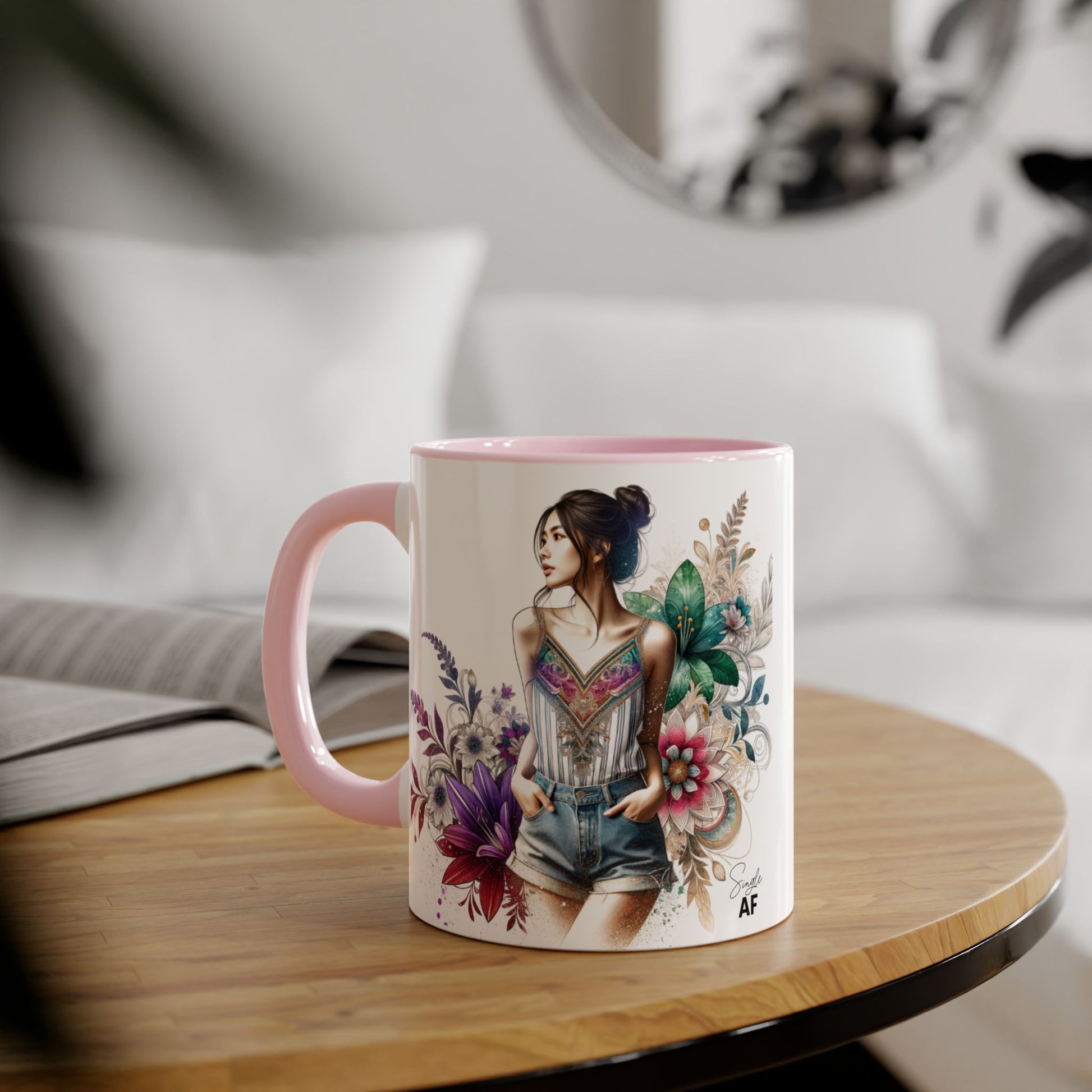 Single AF Boho Flower Accent Mug - Artistic Coffee Cup, Floral Design, Gift for Her, Birthday, Home Decor, Unique Artwork, 11oz