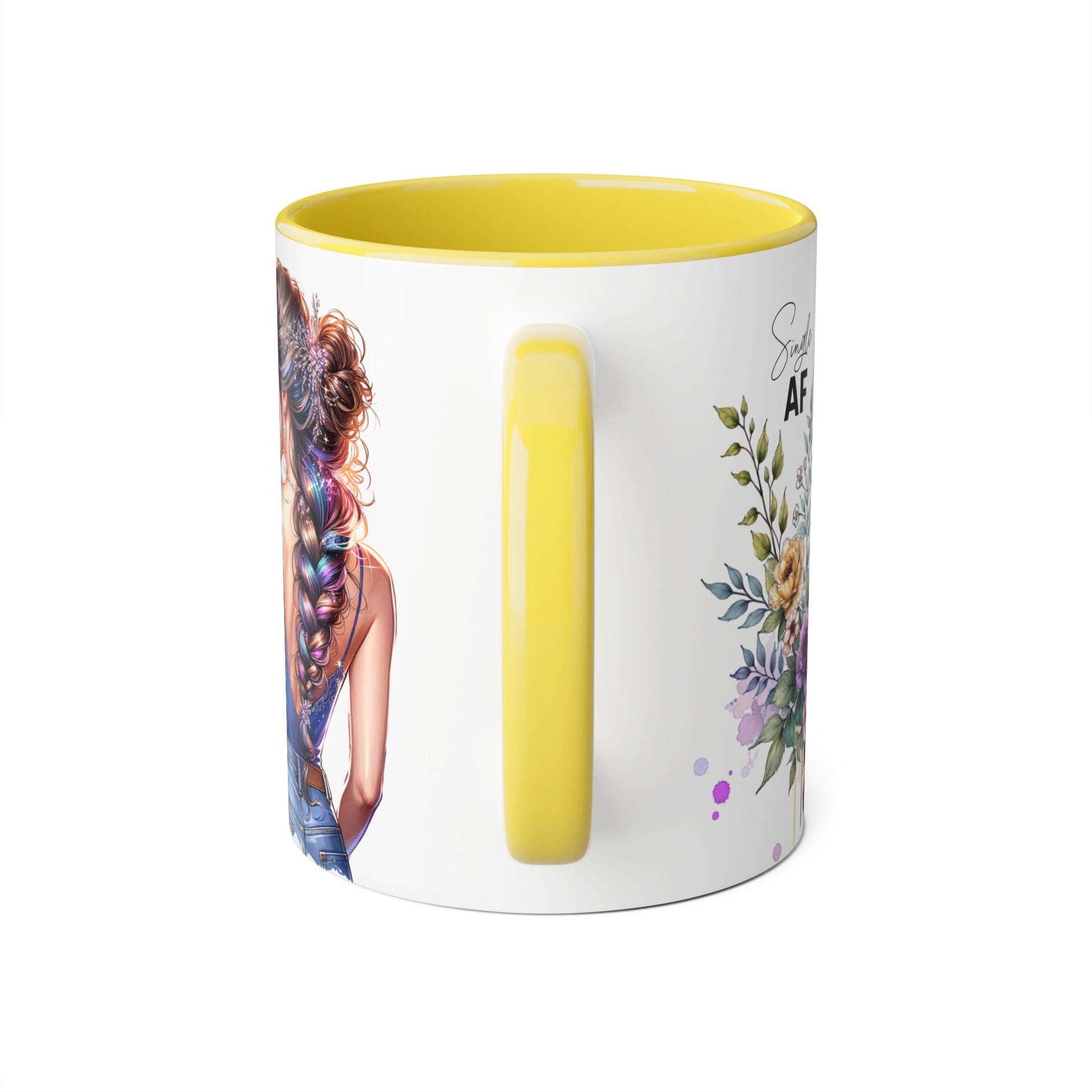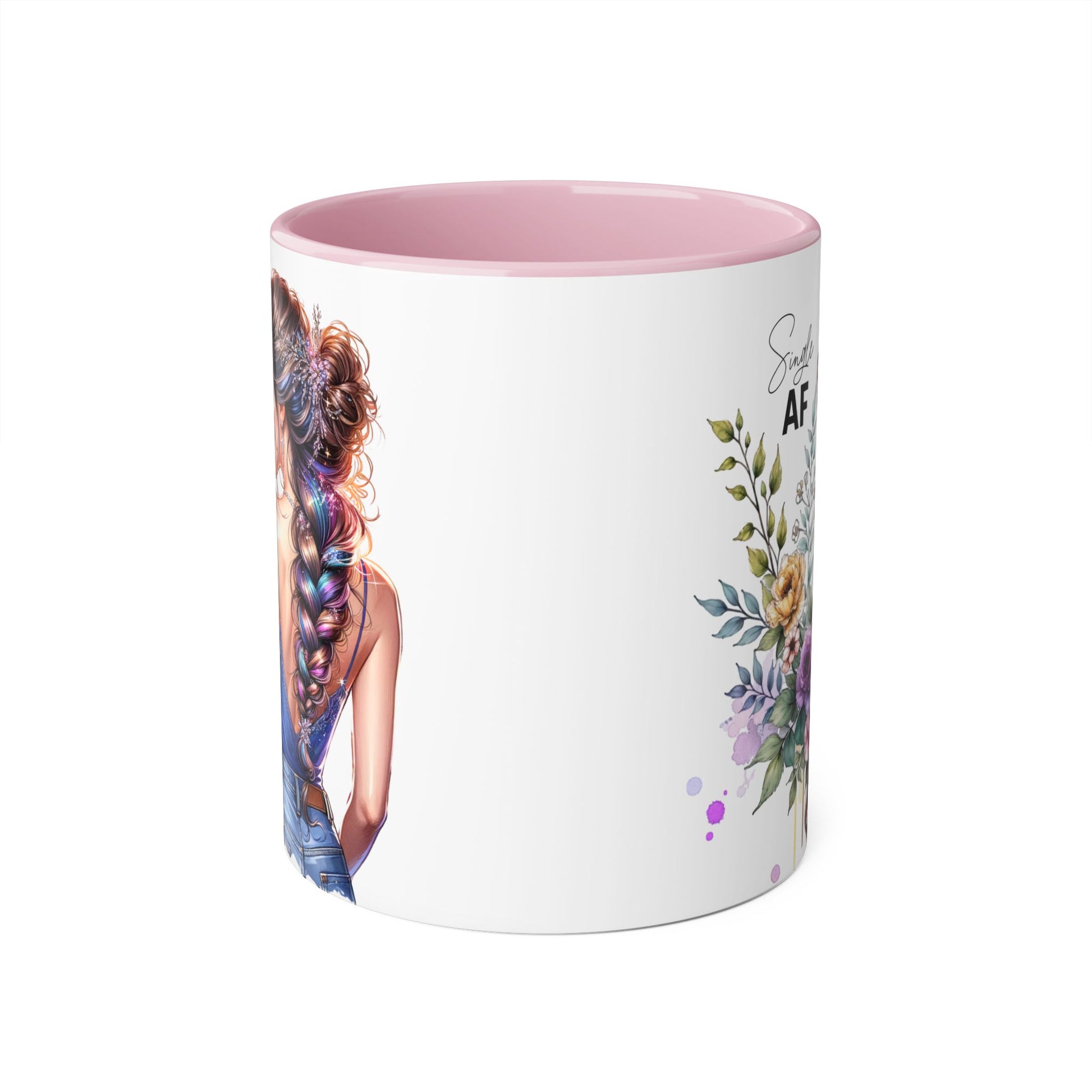 Single AF Stylish Accent Mugs for Coffee Lovers, Floral Design Mug, Gift for Her, Unique Tea Mug, Simple AF Mugs for Home Decor