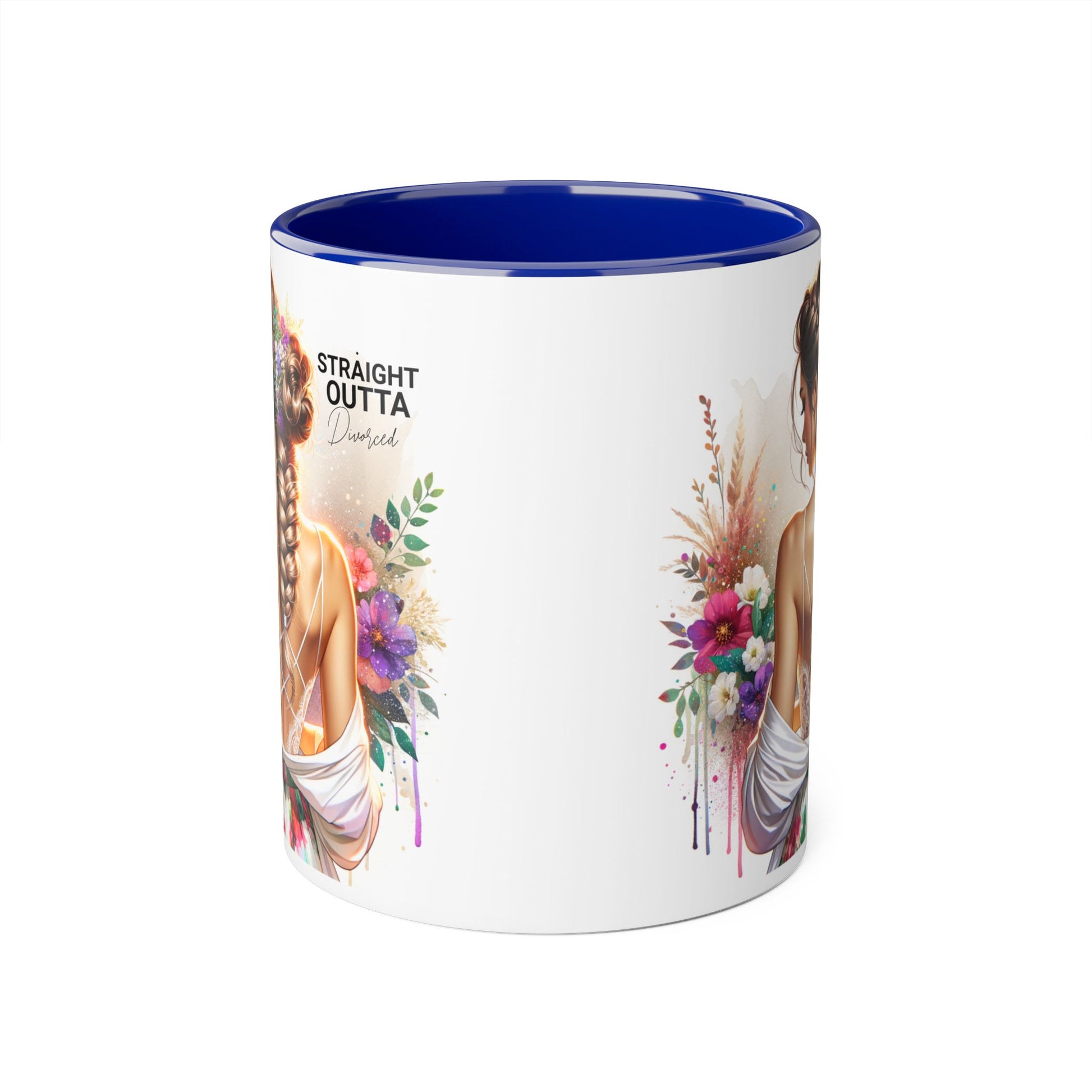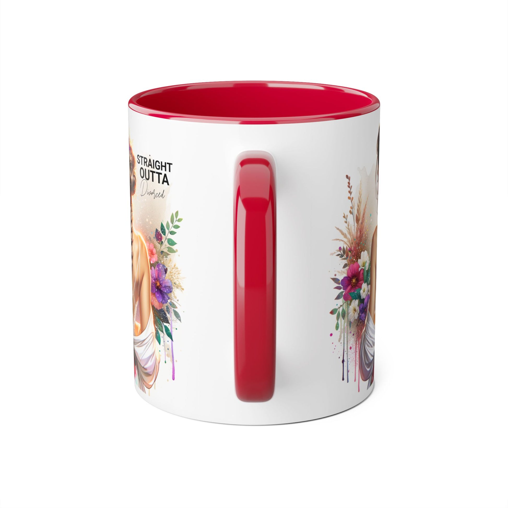 Straight Outta Divorced Humoristic Elegant Floral Accent Mug - Straight Outta Inspired Design, Coffee Cup, Gift for Her, Home Decor, Unique Drinkware, Birthday