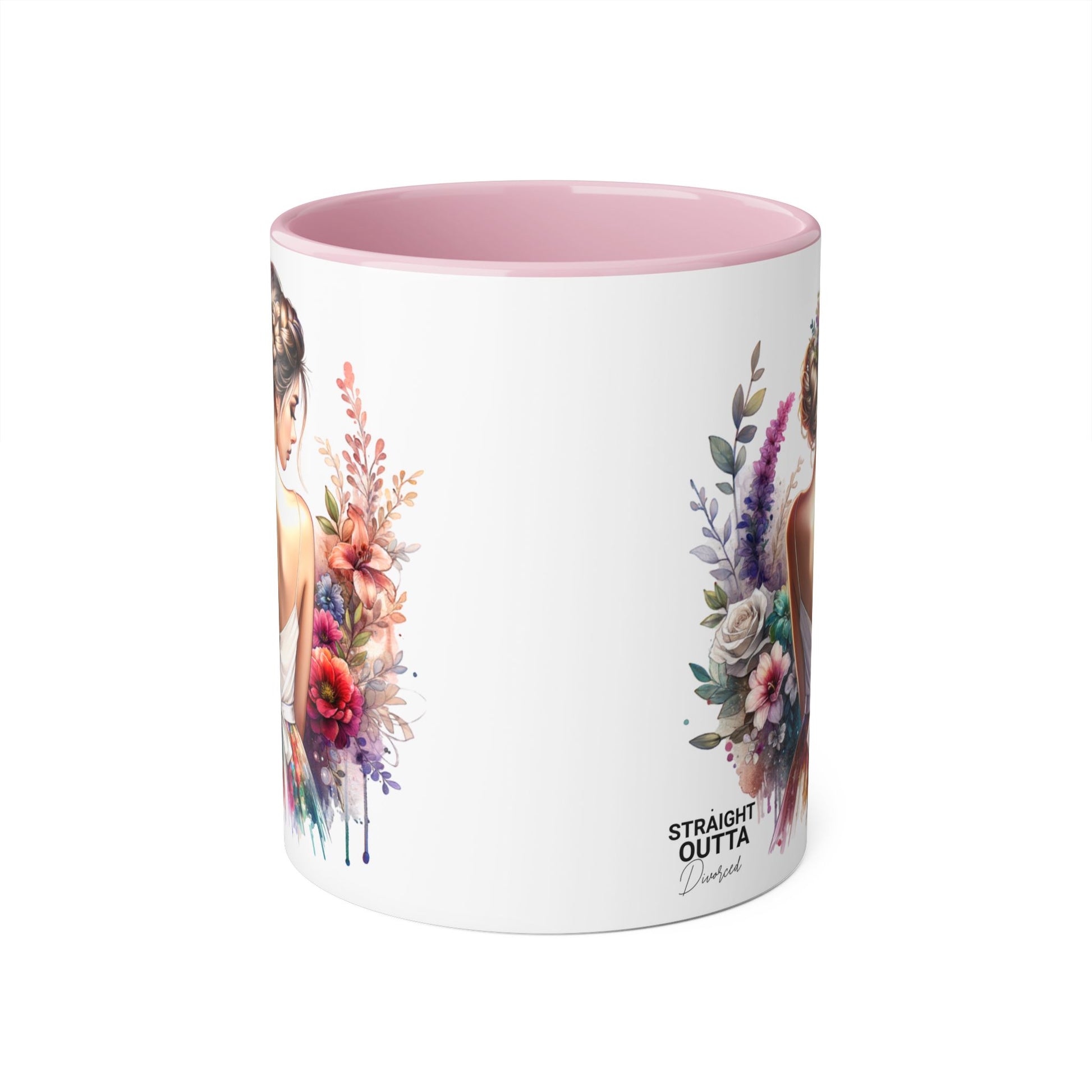 Straight Outta Divorced Humoristic Floral Art Mug, Personalized Gift Mug, Wedding Gift, Coffee Mug, Inspirational Mug, Colorful Accent Mug