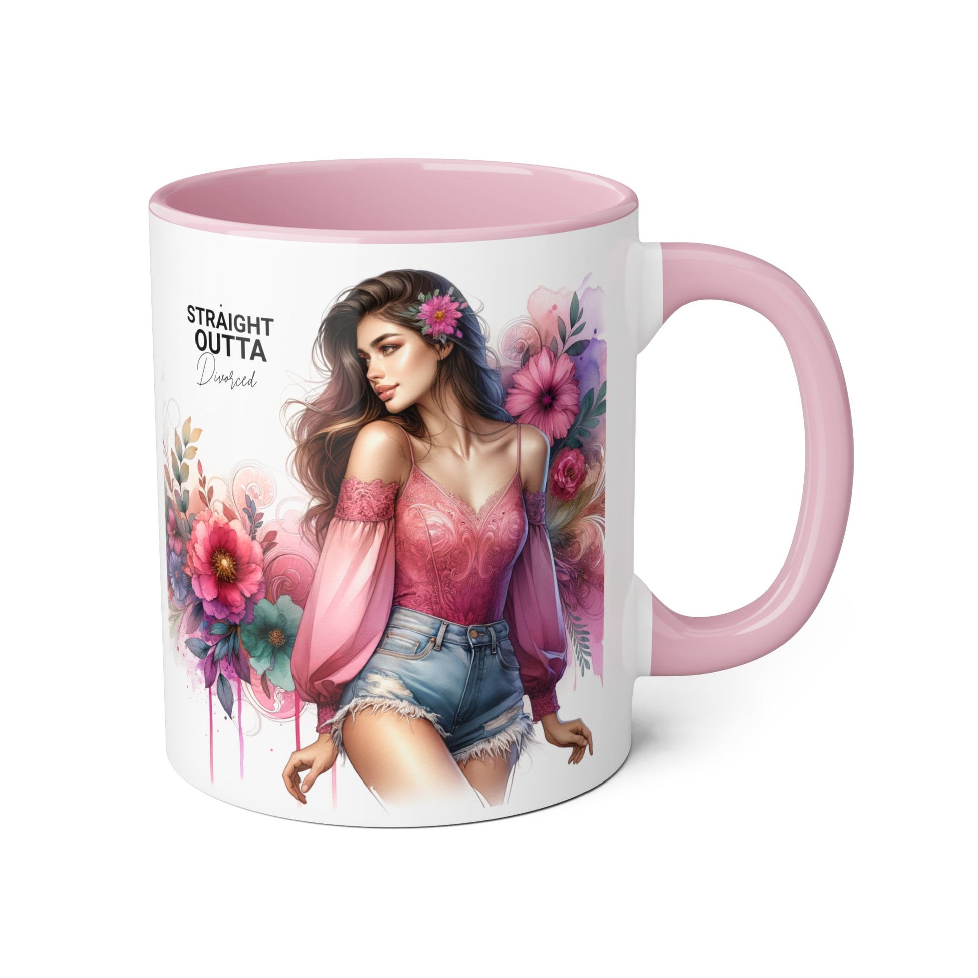 Straight Outta Divorced Humoristic Stylish Accent Mug, Floral Coffee Cup, Gifts for Her, Straight Outta, Unique Art Mug, Home Decor, Birthday Present