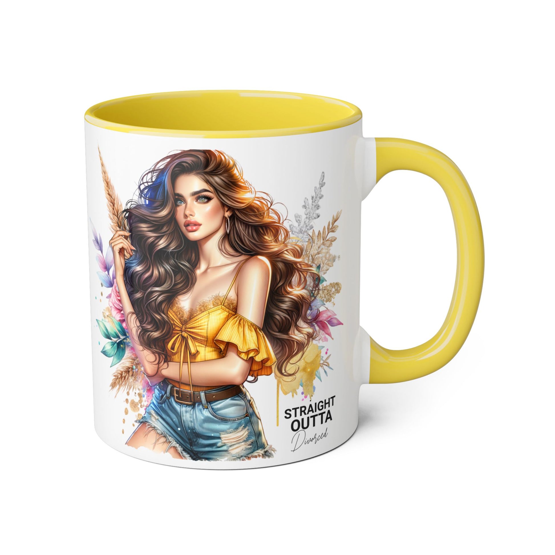 Straight Outta Divorced Humoristic Vibrant Accent Mug for Coffee Lovers, Perfect Gift for Birthdays, Anniversaries, or Home Decor
