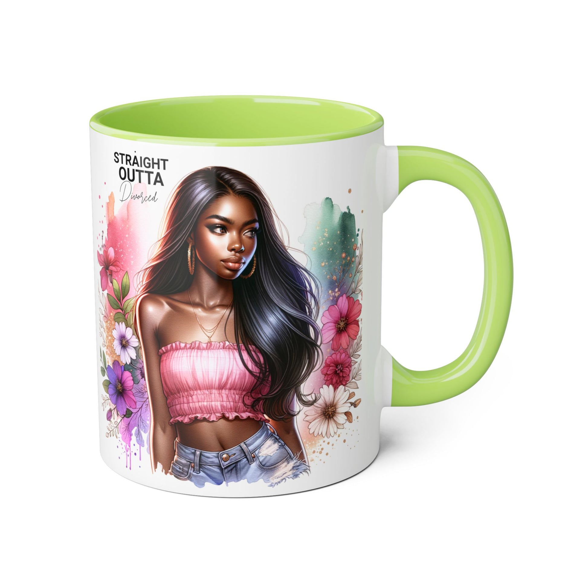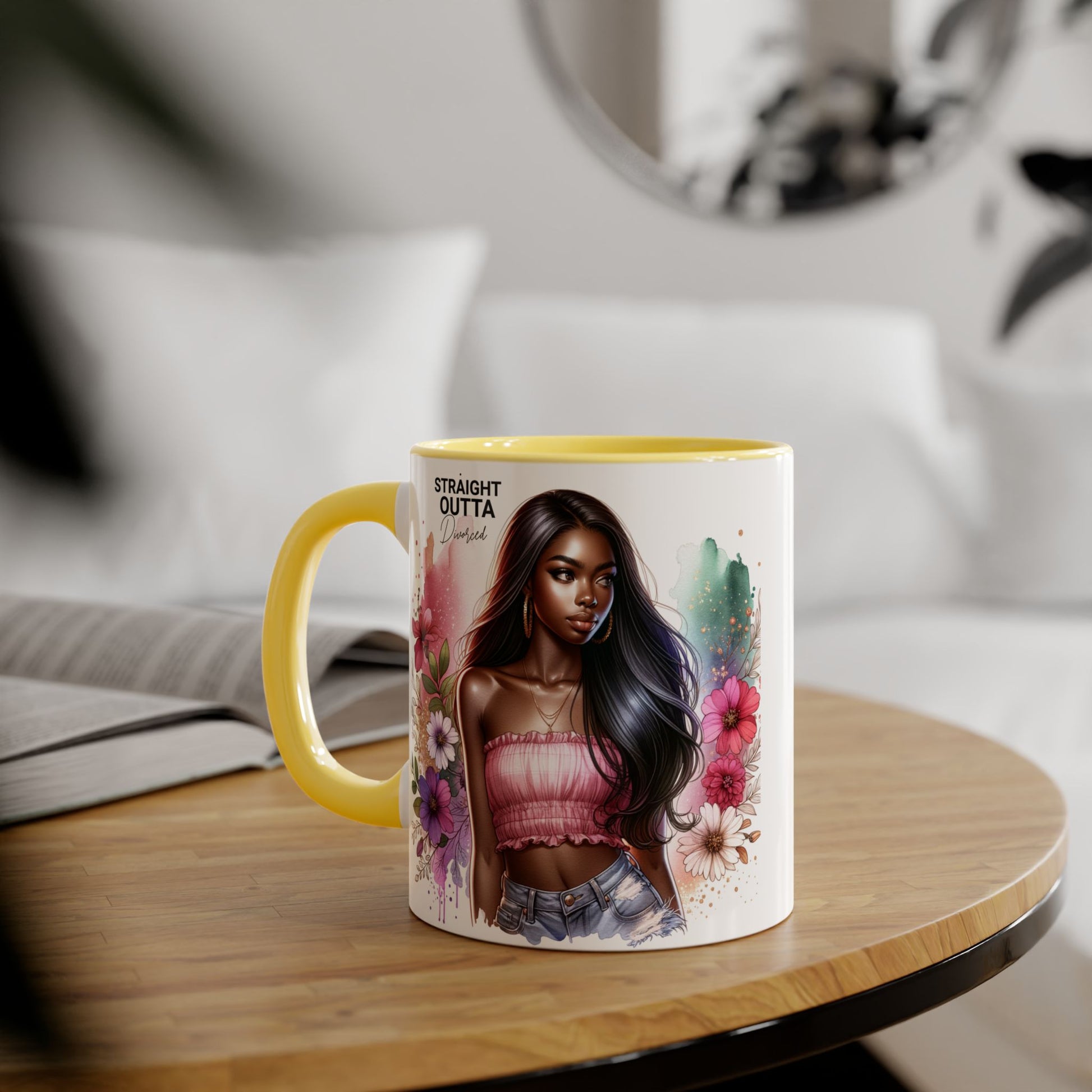 Straight Outta Divorced Humoristic Vibrant Accent Mugs, Gift for Her, Motivational Coffee Mug, Floral Design Mug, Unique Art Mug, Birthday Gift Idea, Home Decor