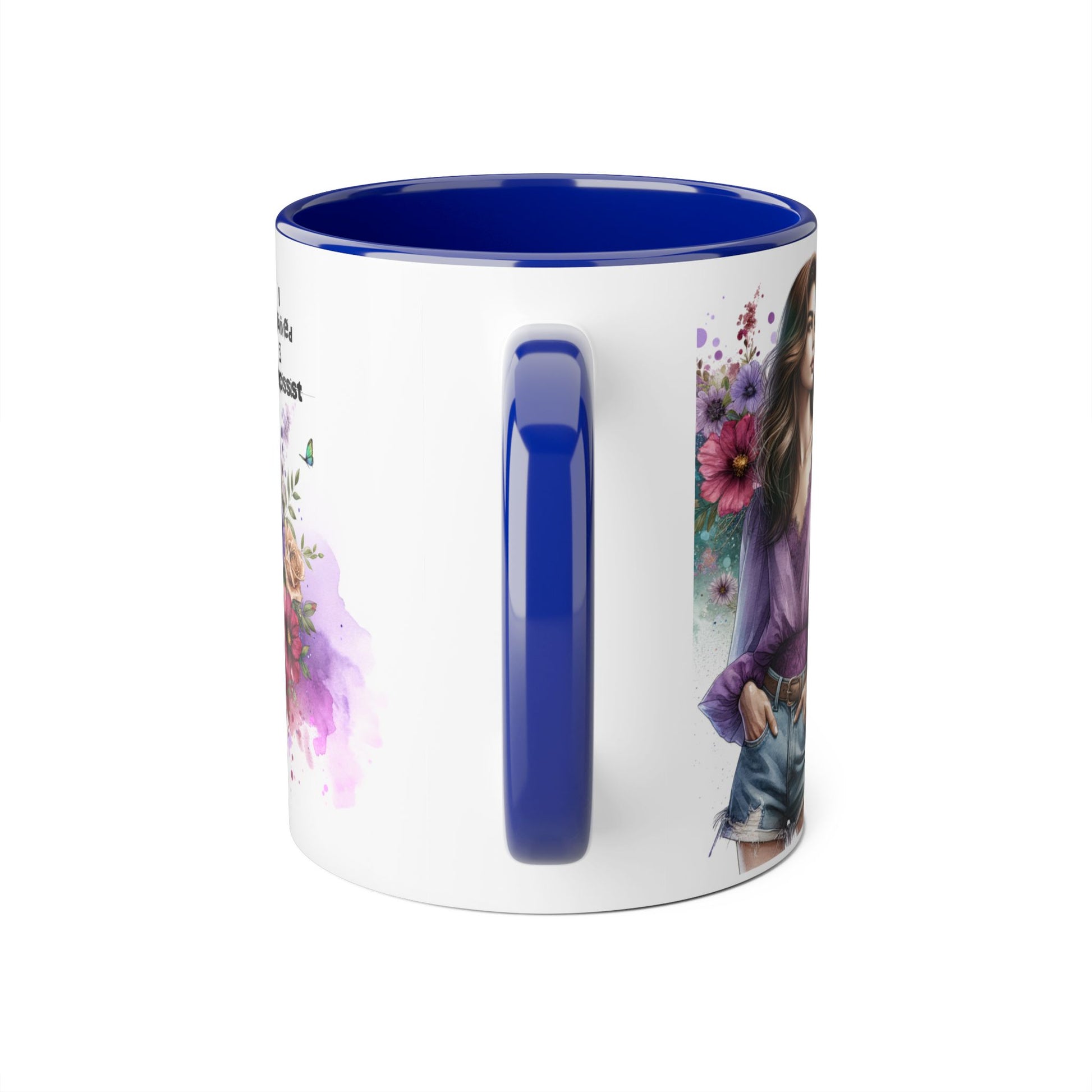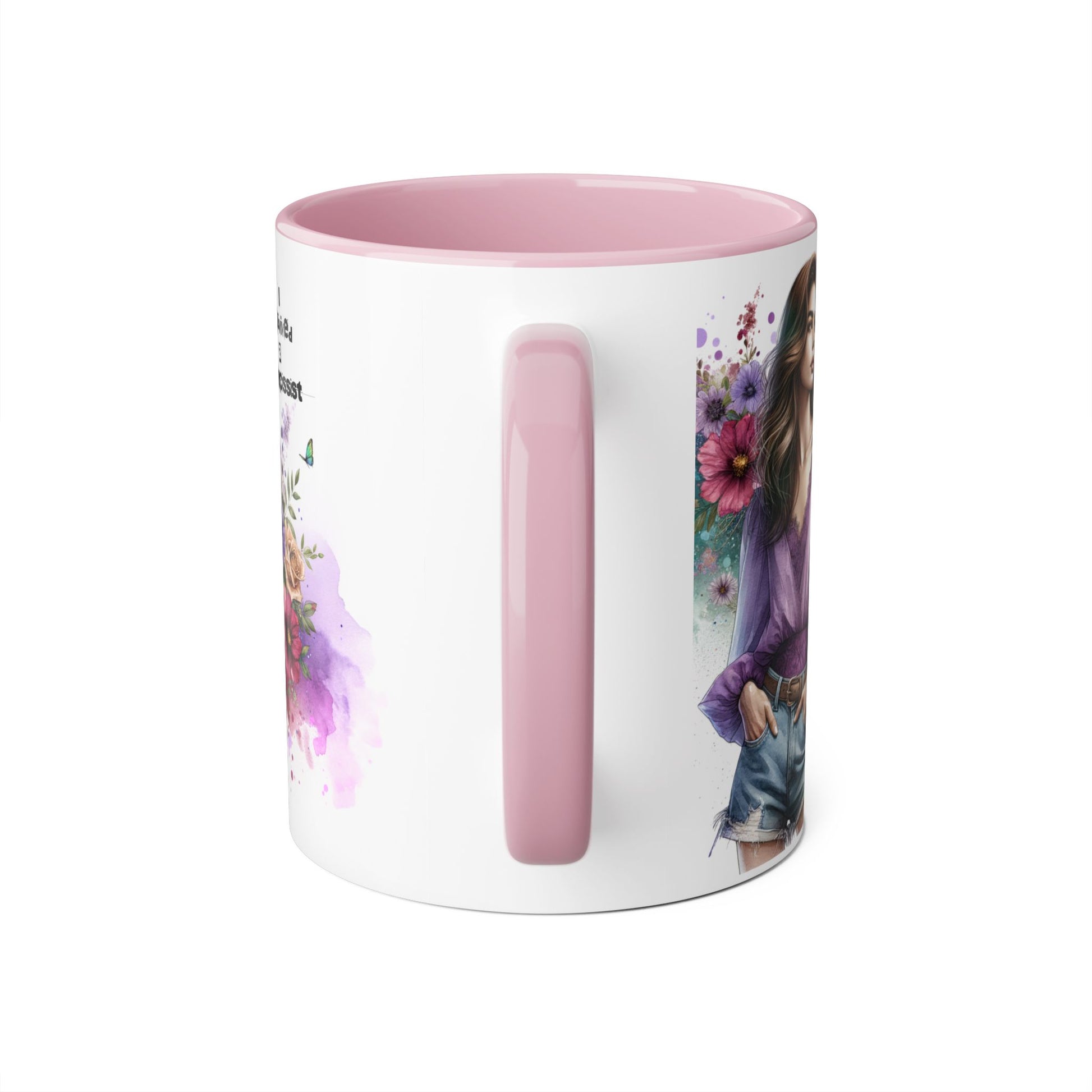 Stylish Floral Accent Mug with Quote, Perfect Gift for Coffee Lovers, Home Decor, Inspirational, Birthday, Humor, Self-Love