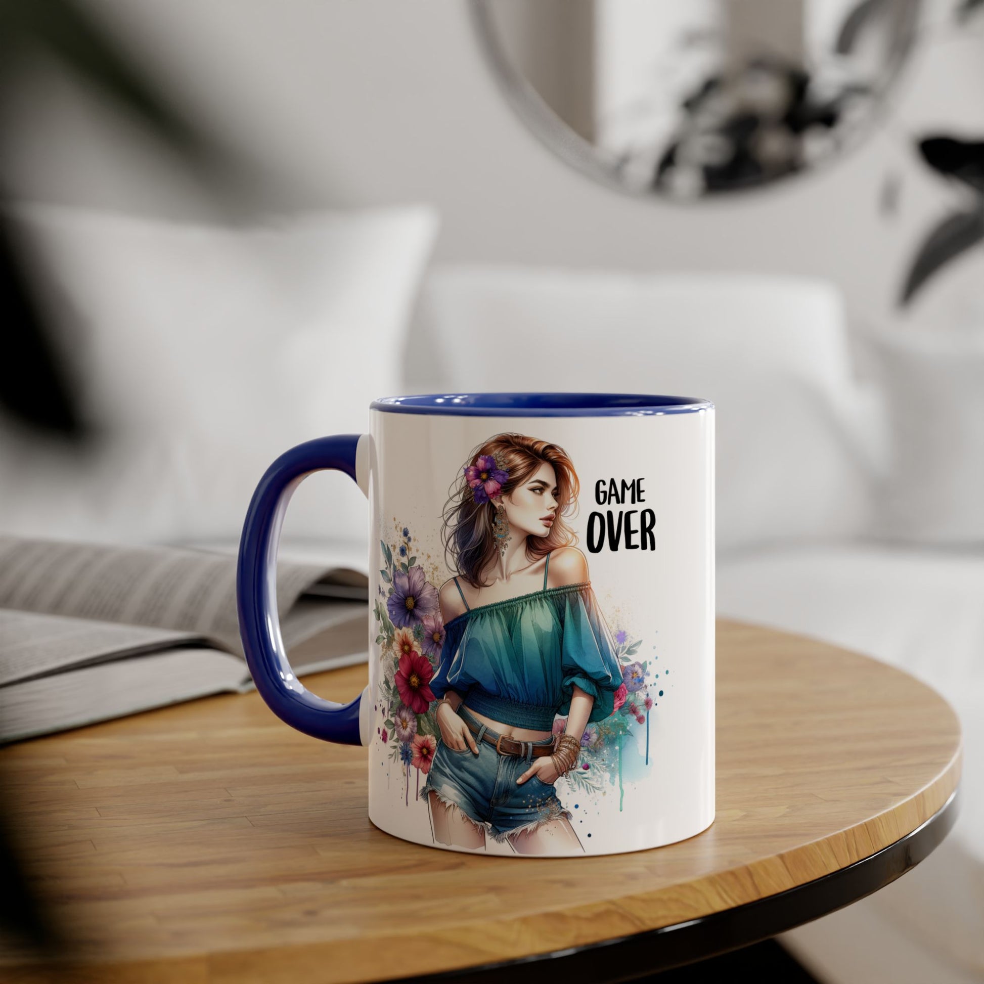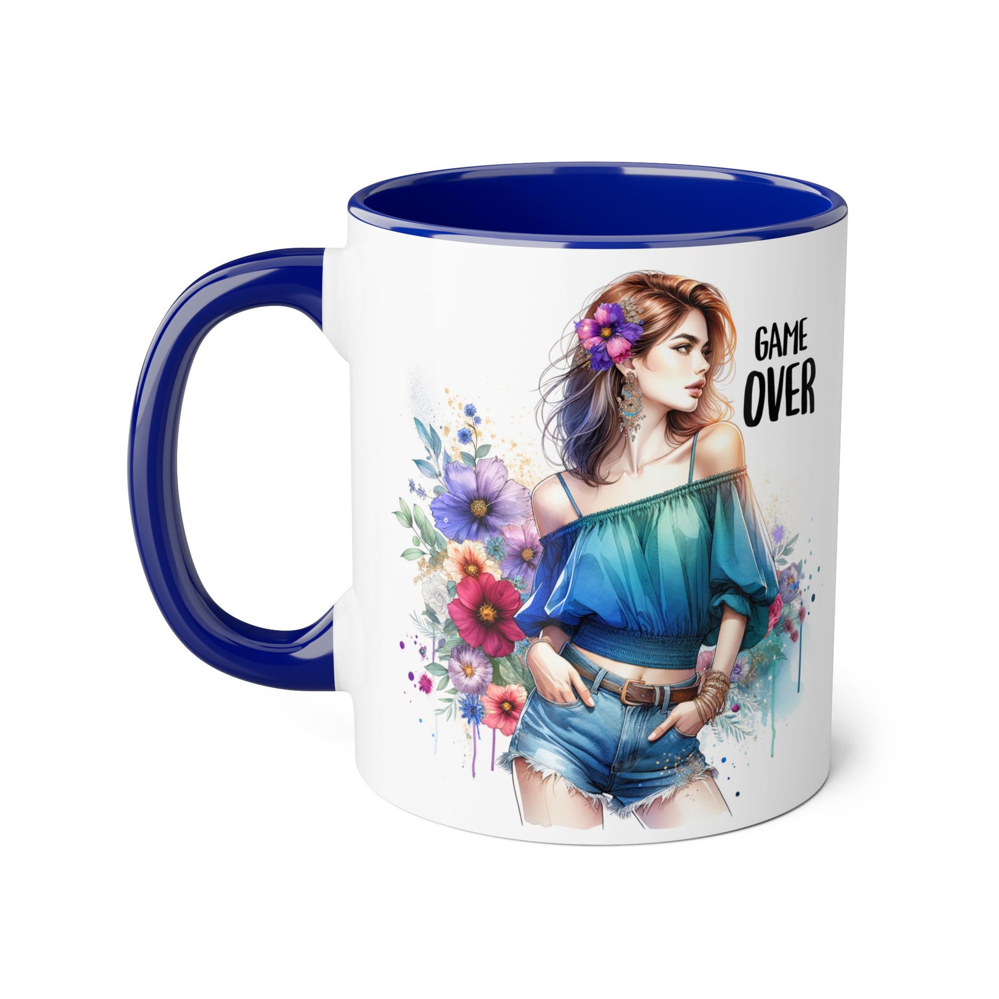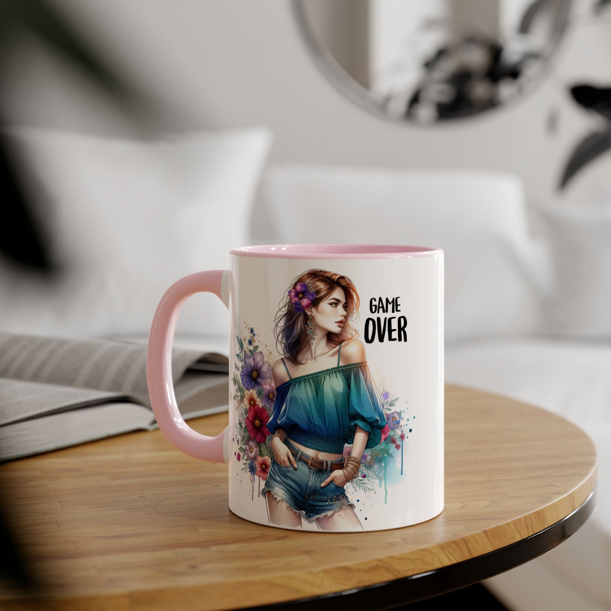 Vibrant Game Over Accent Mug - Floral Design, 11oz Coffee Cup, Unique Gift, for Gamers, Birthday or Everyday Use