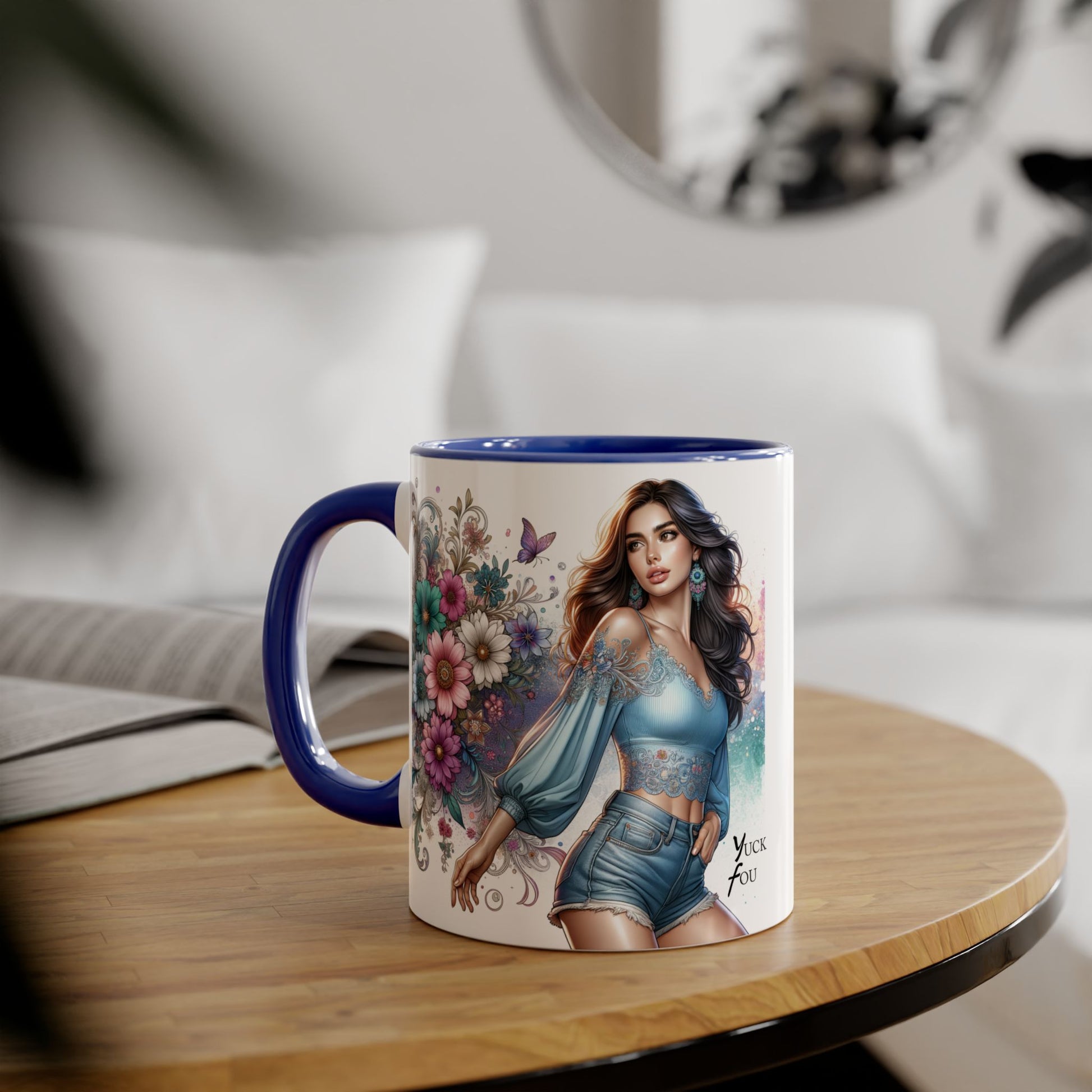 Yuck Fou Artistic Accent Mug, Floral Coffee Cup, Unique Gift for Her, Decorative Drinkware, Birthday Present, Home Décor