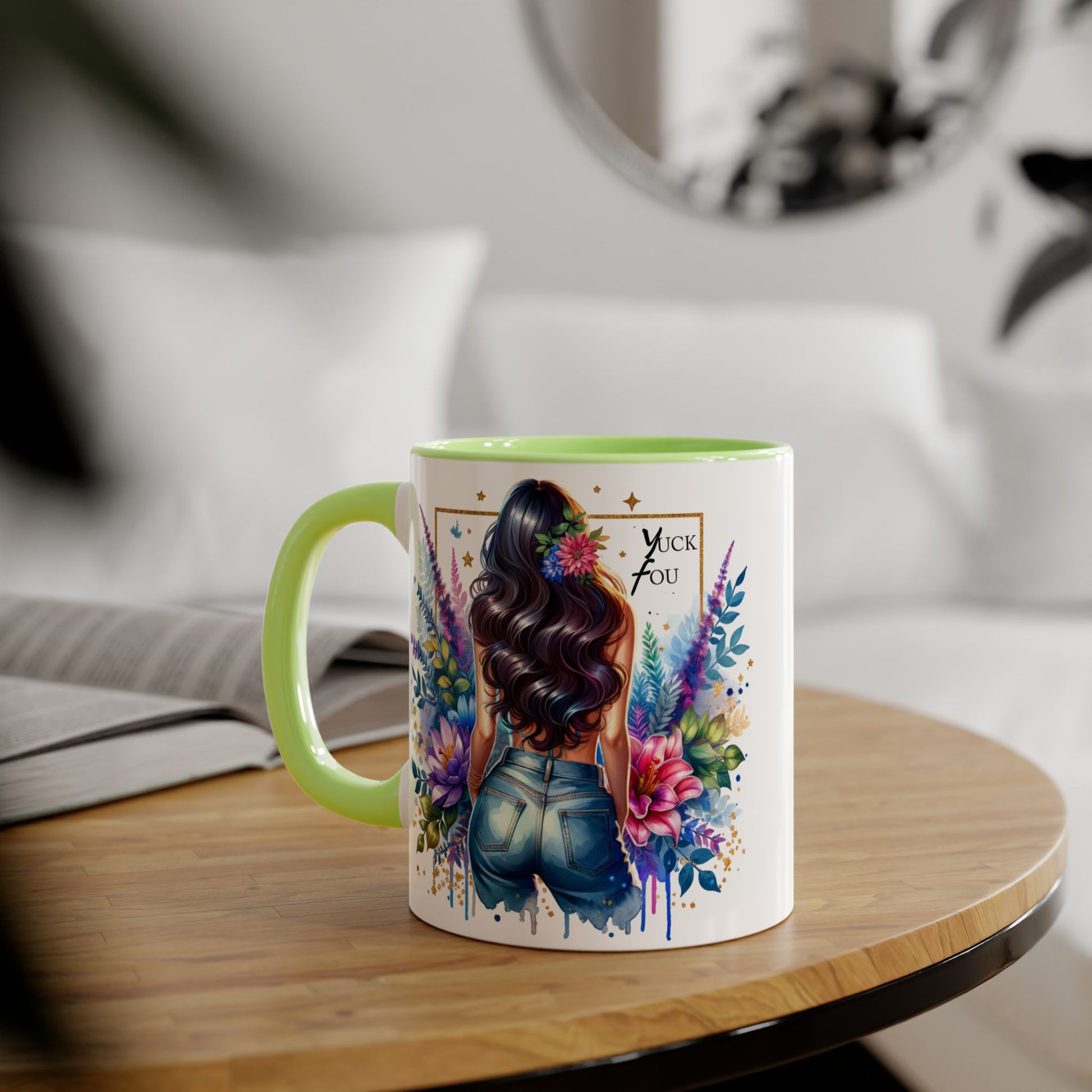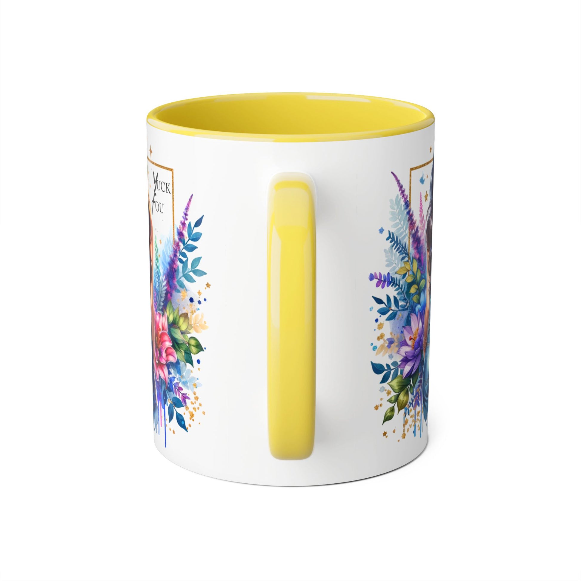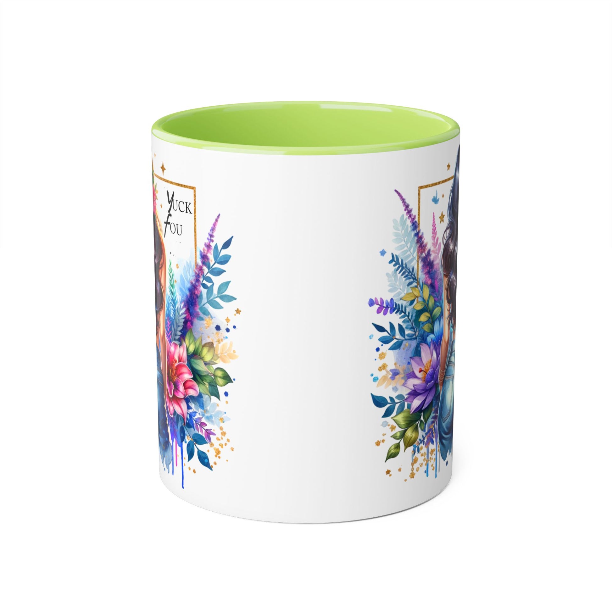 Yuck Fou Bohemian Floral Accent Mug, 11oz, Artistic Coffee Cup, Gift for Her, Stylish Drinkware, Home Decor, Unique Kitchen Accessories